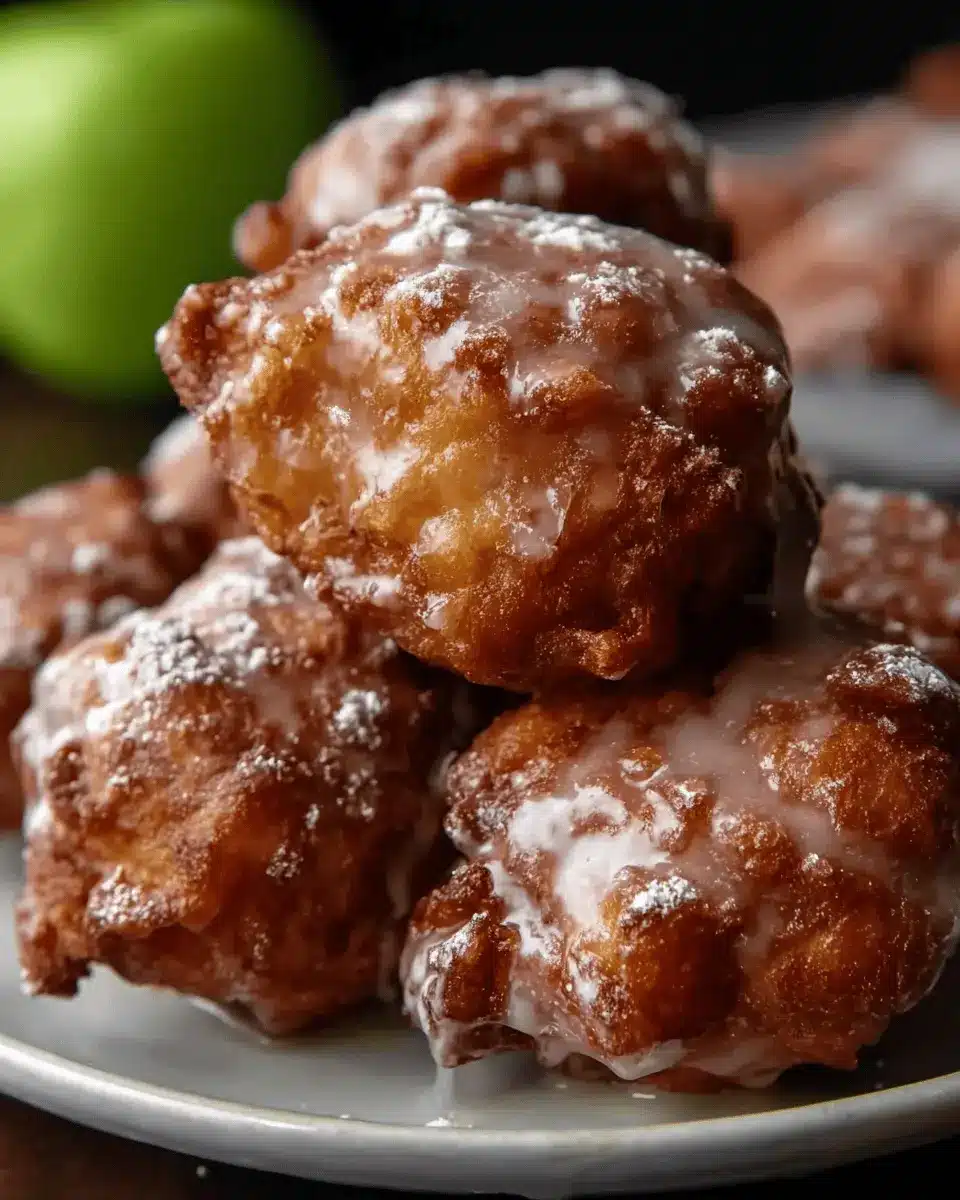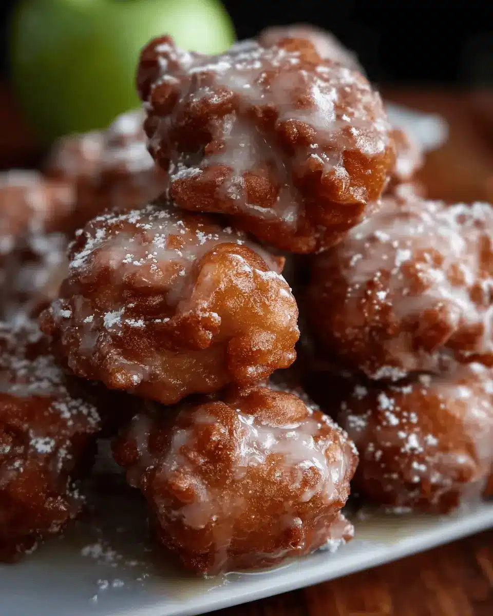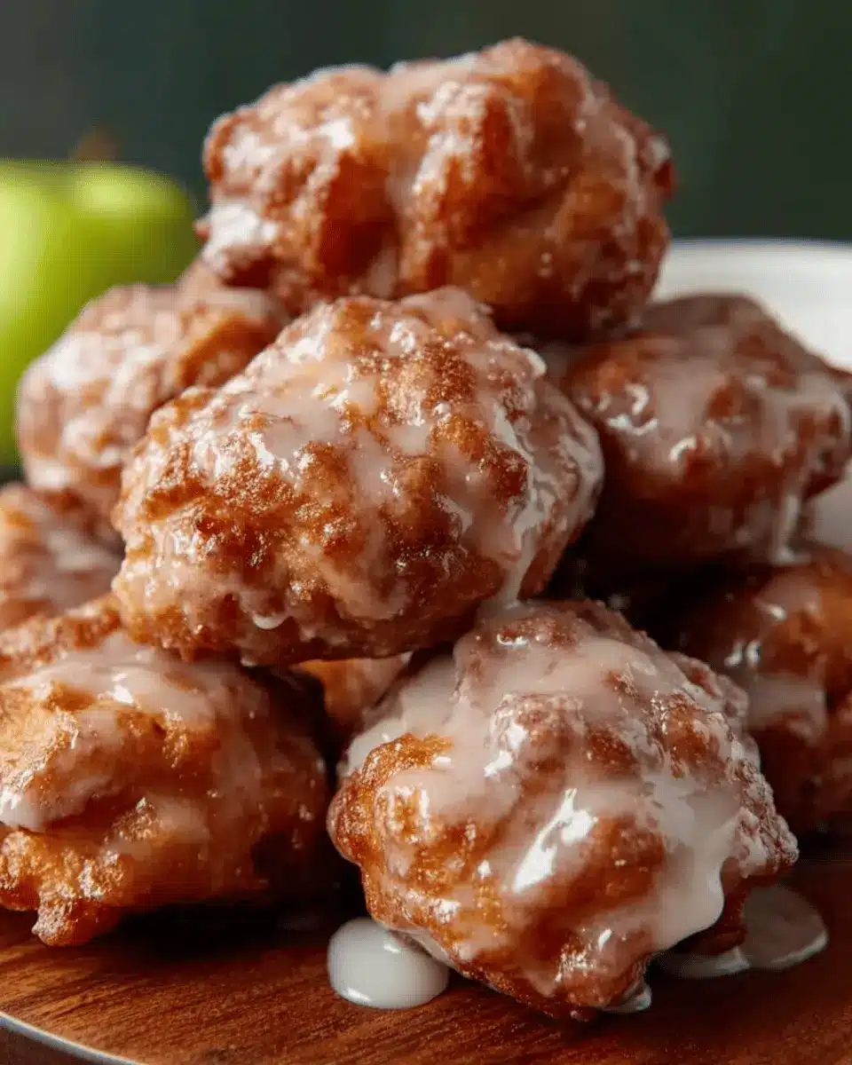 Once your apple fritter bites are slightly warm but not hot, it’s time to dip them into the glaze. Place the glazed fritters on a parchment-lined plate, allowing the glaze to set. Feel free to enjoy one (or two) right away—you deserve it!