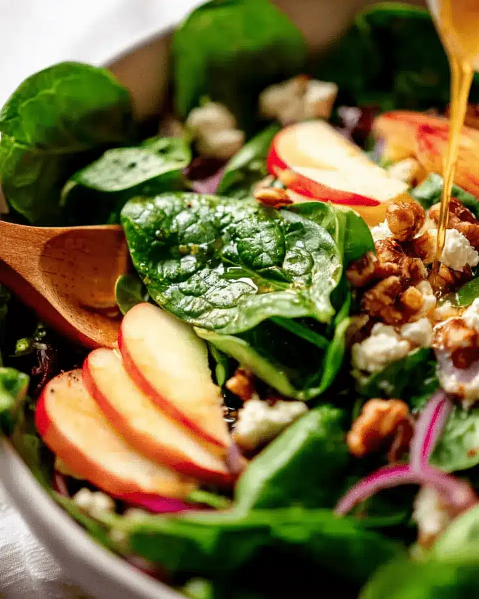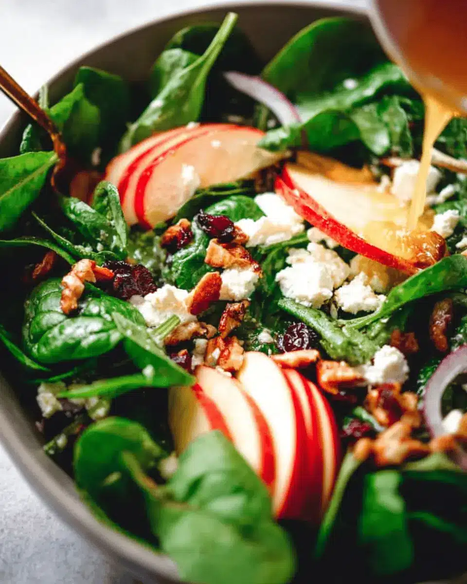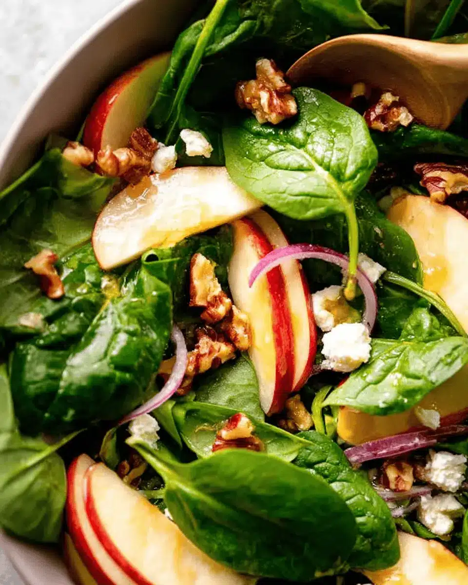 Nutrient-Dense: The combination of fresh spinach, crunchy apples, and nutrient-rich nuts provides essential vitamins and minerals. Incorporating this salad into your weekly meal prep can help you meet your nutritional goals effortlessly.