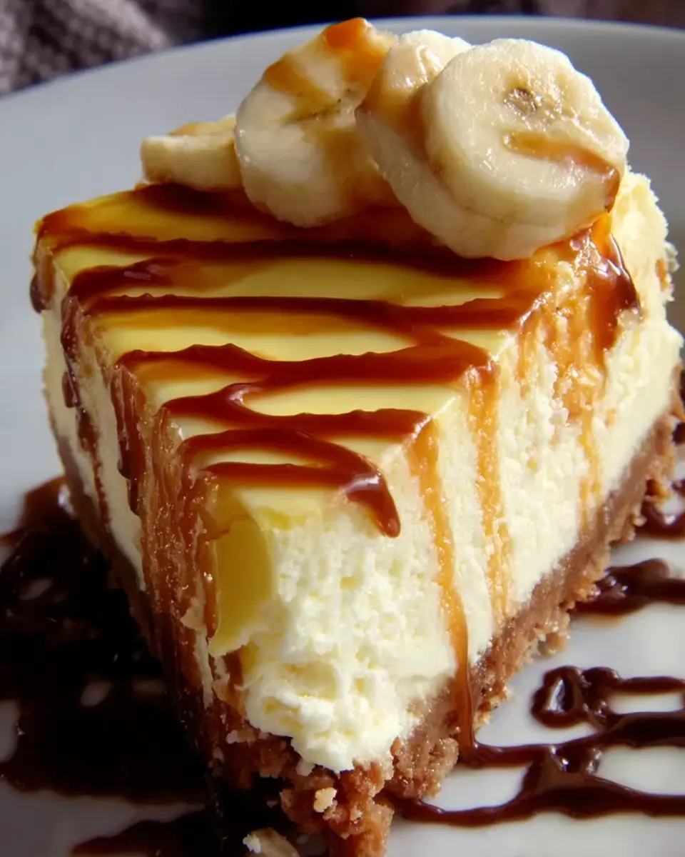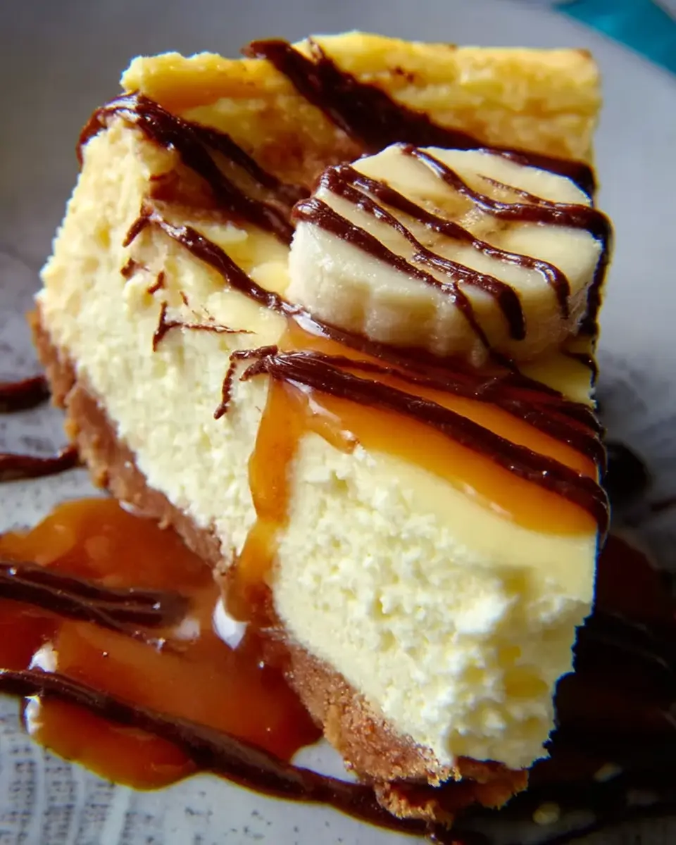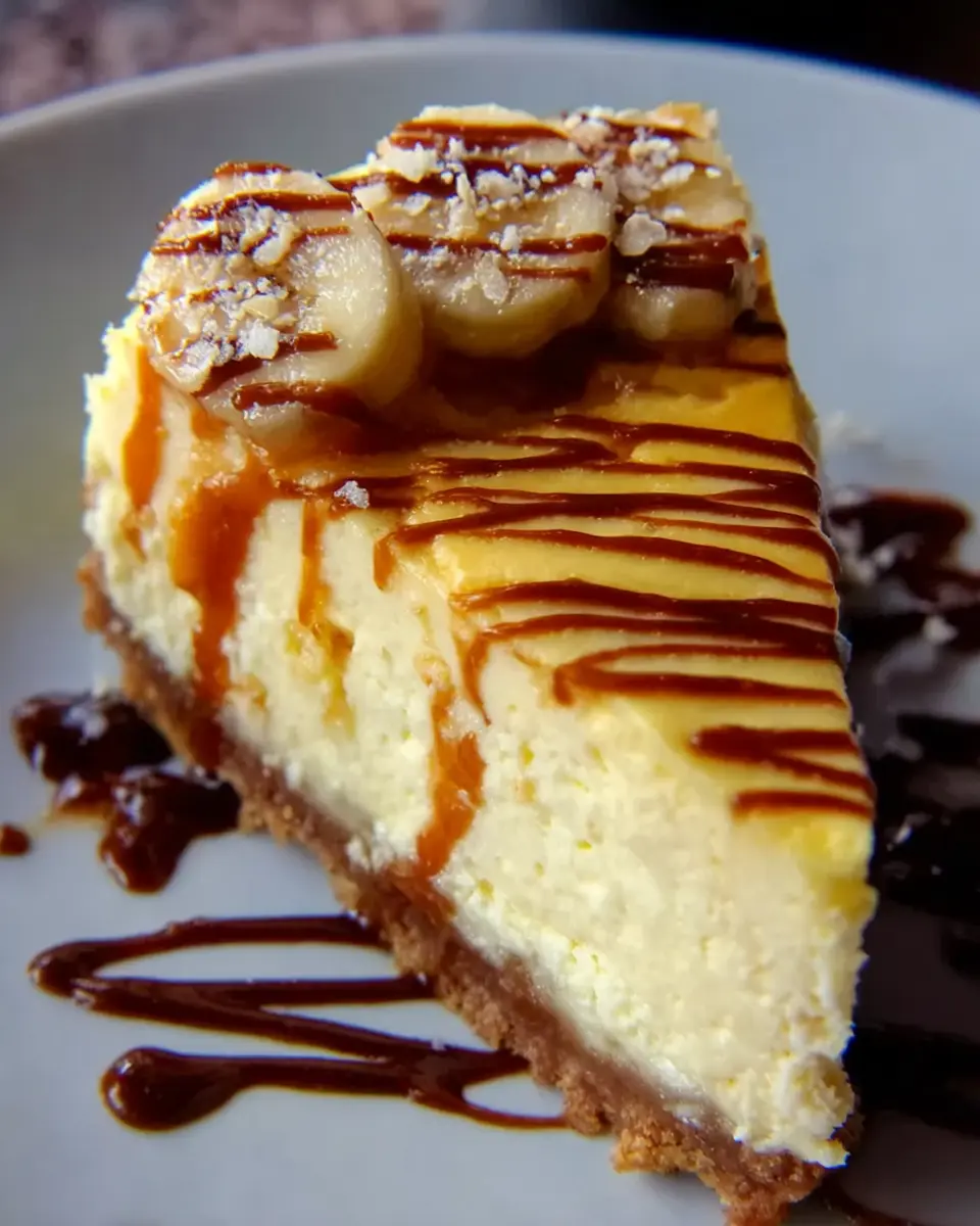 In summary, the Banana Cheesecake with Caramel Sauce is a delightful dessert that perfectly combines the creamy richness of cheesecake with the sweet, fruity essence of bananas and a luscious caramel drizzle. This recipe is not only easy to prepare but also impressively elegant, making it ideal for gatherings or a cozy night in. Enjoy every bite!
