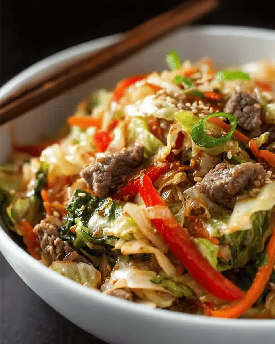 In summary, this beef and cabbage stir fry offers a quick, nutritious, and delicious meal option that is perfect for busy weeknights. With endless customization possibilities, you can easily adapt the recipe to suit your tastes. Dive into this delightful fusion of flavors and enjoy!