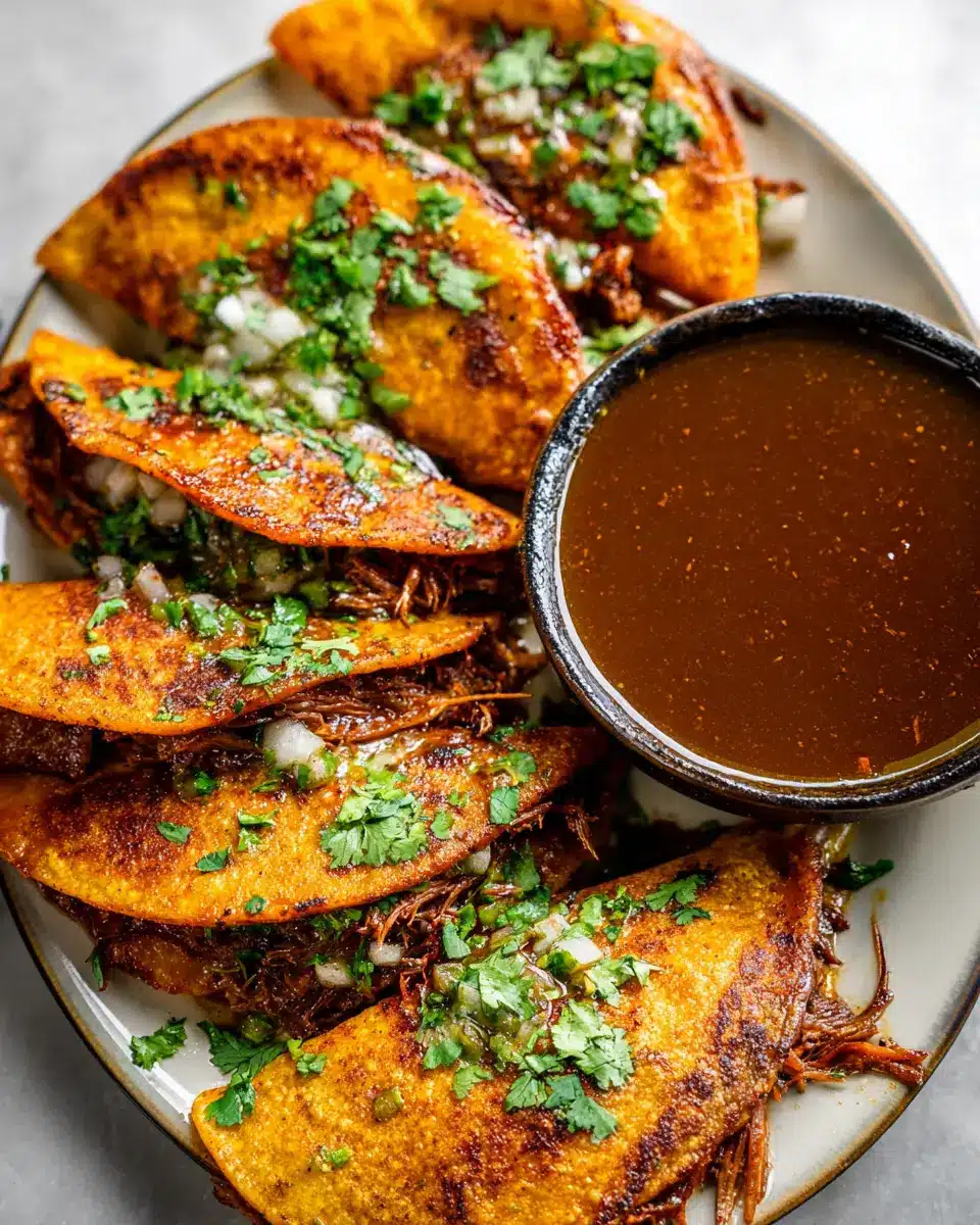 Birria tacos are the perfect blend of savory flavors and vibrant textures. Whether it’s a cozy dinner at home or a festive gathering, these tacos will impress your friends and family. Don’t forget the dipping broth—it enhances each bite and makes for a delightful experience! Happy cooking!