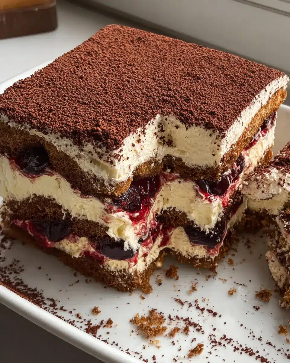 Absolutely! This dessert actually benefits from sitting in the refrigerator for a day or two, as the flavors meld beautifully over time. You can prepare your Black Forest Tiramisu well in advance for special occasions, which makes it an excellent choice for busy schedules. Just remember to dust it with cocoa powder just before serving!