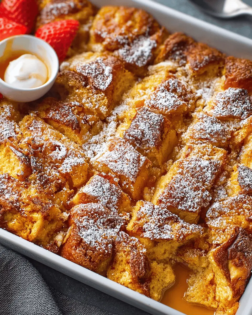The Brioche French Toast Casserole is the perfect dish to impress your friends and family during brunch gatherings. Its sweet, buttery flavor combined with a delightful crunch makes for an unforgettable experience. Enjoy warm, dusted with powdered sugar, and share the joy of this simple yet exquisite recipe!