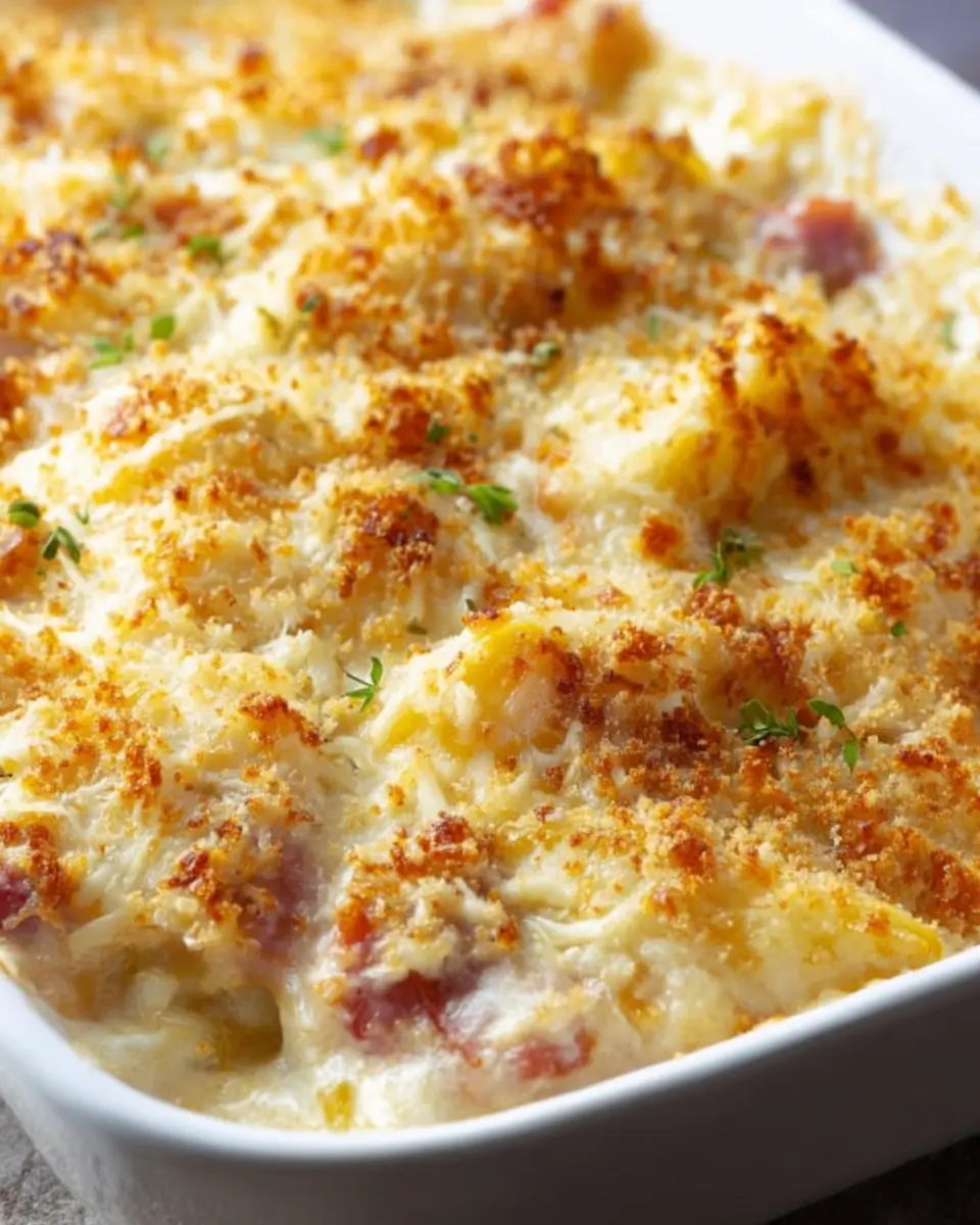 For that irresistible crunch, mix 1 cup of Panko breadcrumbs with 2 tablespoons of melted butter in a small bowl. Sprinkle this mixture generously over the top of your casserole. The Panko will crisp up nicely, adding a delightful texture that contrasts beautifully with the creamy filling below.