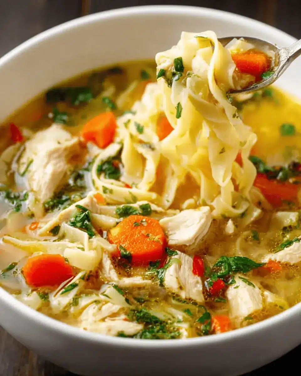 For a delightfully rich twist on your classic Chicken Noodle Soup, consider making it creamy! Simply add a splash of heavy cream or half-and-half during the last few minutes of cooking. This gives the broth a luxurious texture and enhances the flavors beautifully. Top it off with some fresh herbs like parsley or chives for a fresh finish.