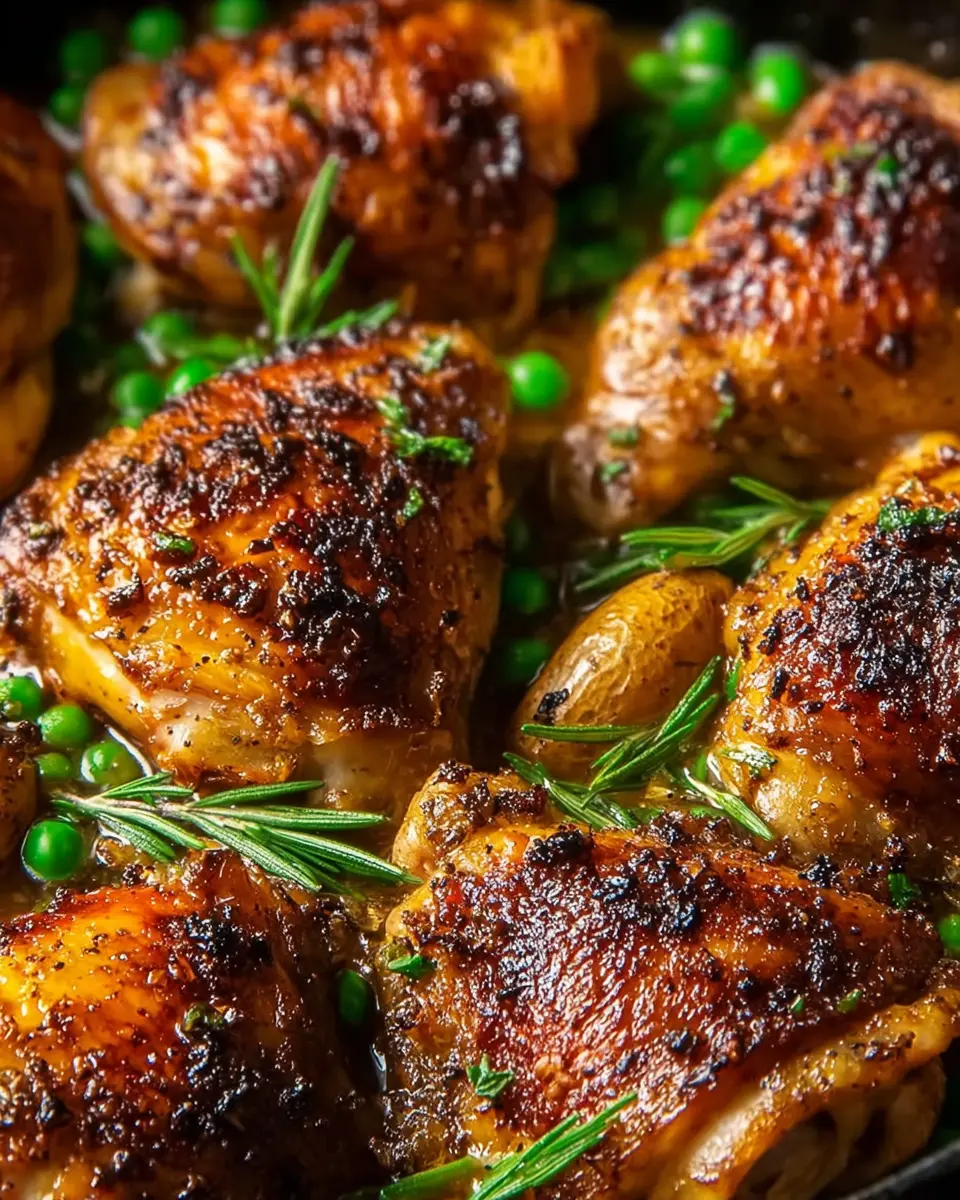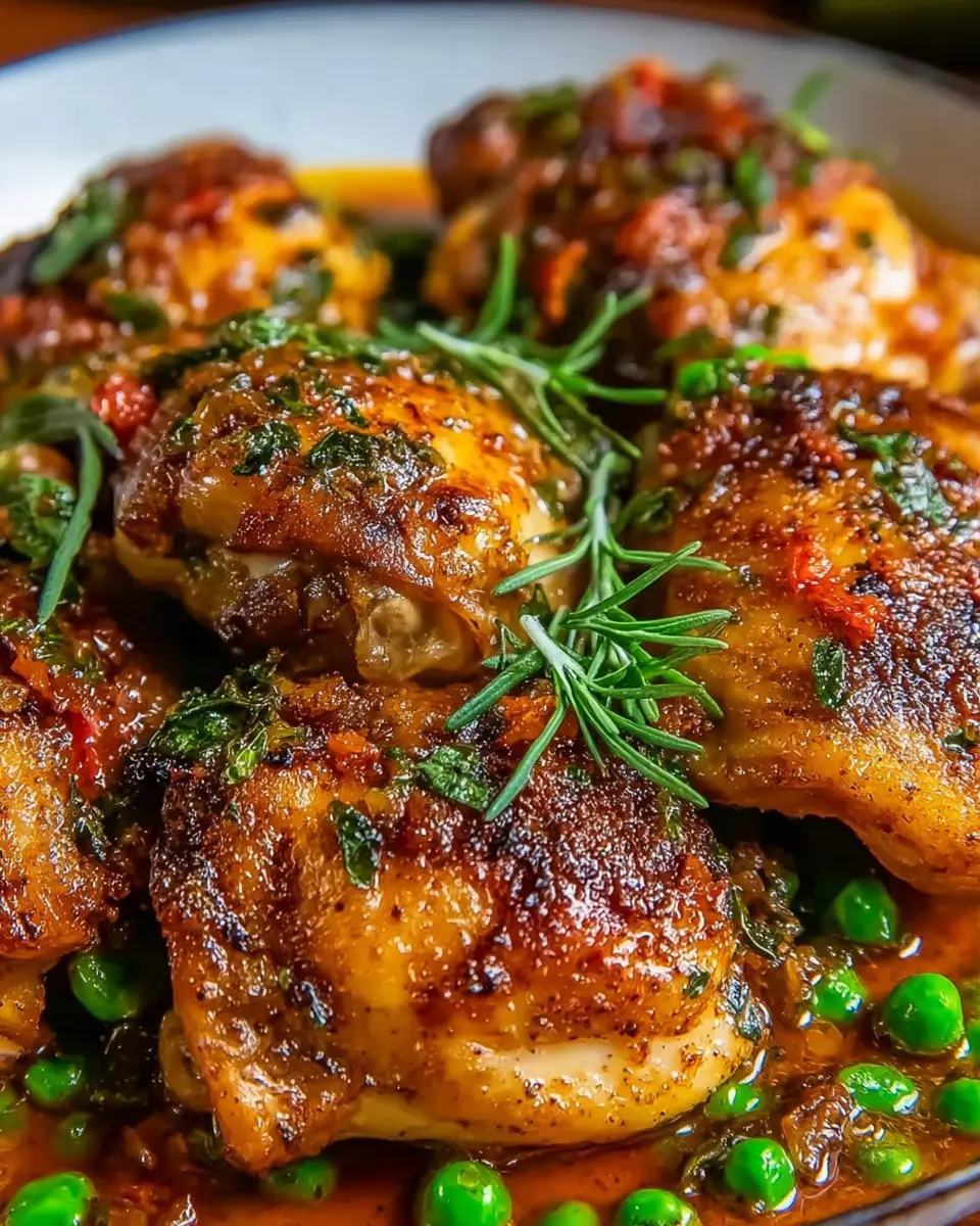- In a large oven-safe skillet, heat olive oil over medium-high heat. Add the chicken pieces, skin side down, and sear until golden brown, about 5-7 minutes. Flip and sear the other side for another 5 minutes. Remove and set aside.