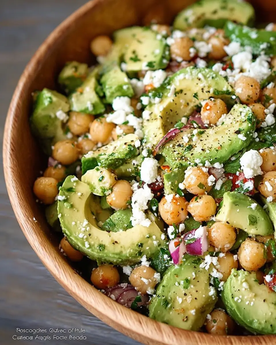 For a delicious Mediterranean twist on your Chickpea, Avocado, & Feta Salad, add a handful of chopped olives! Kalamata or green olives lend a briny flavor that perfectly complements the creamy avocado and salty feta. Toss in some diced cucumbers or cherry tomatoes for extra freshness. This variation not only brightens up your dish but also packs an additional punch of healthy fats and flavor.