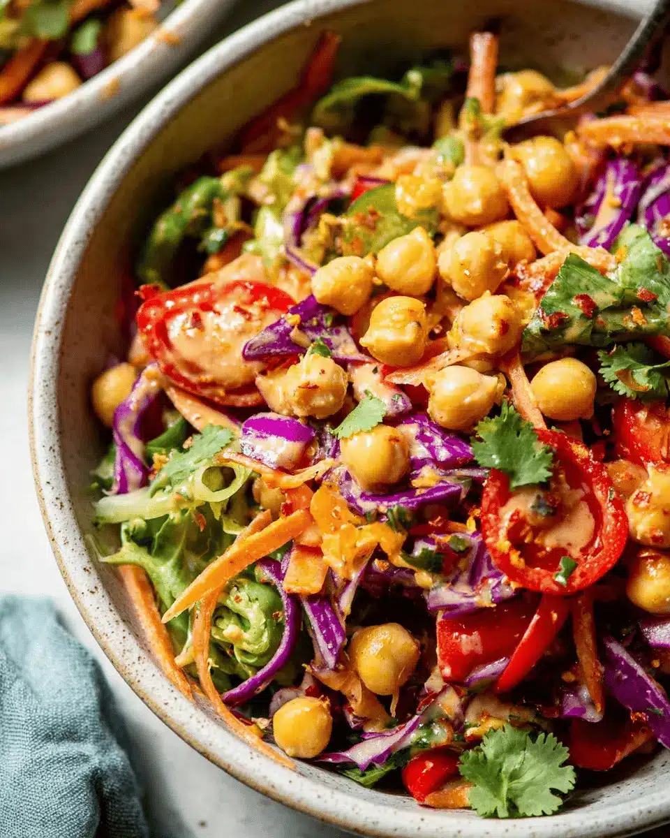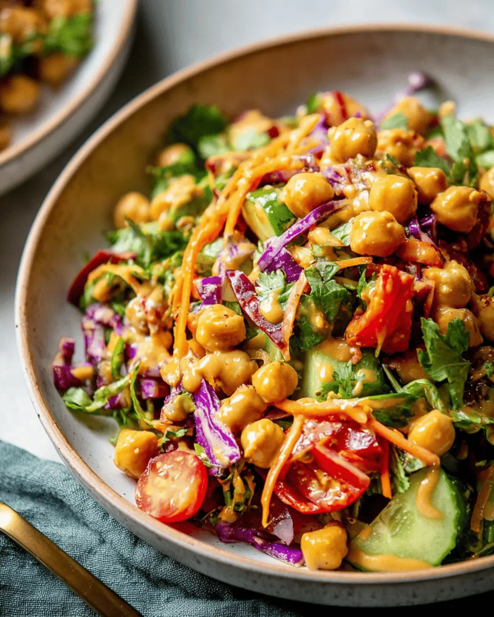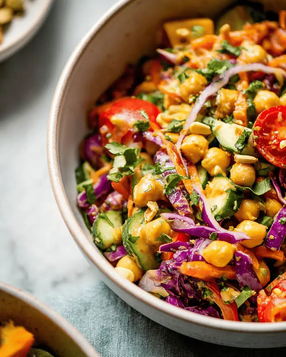 Chopped Thai-Inspired Chickpea Salad with Curry Peanut Dressing