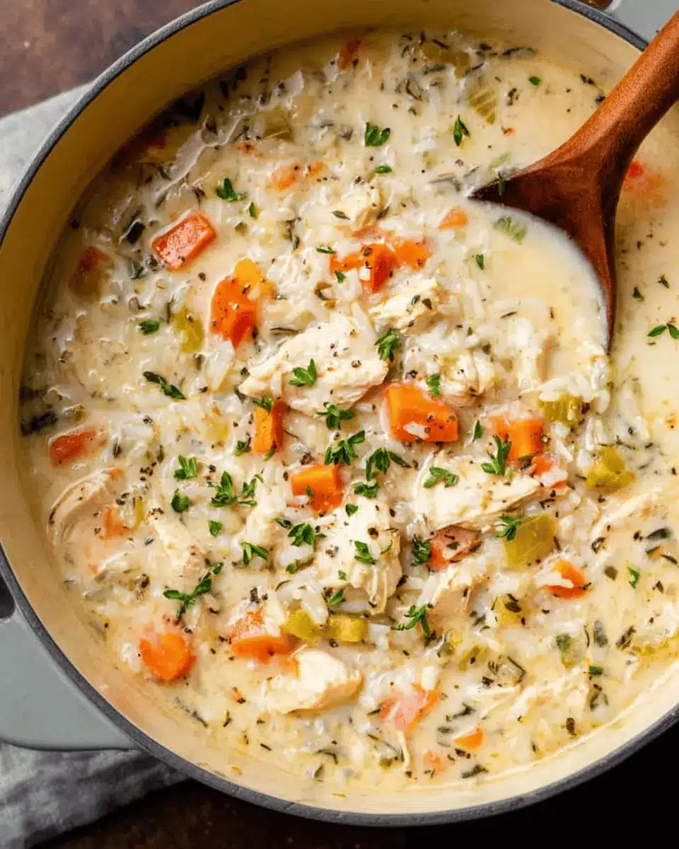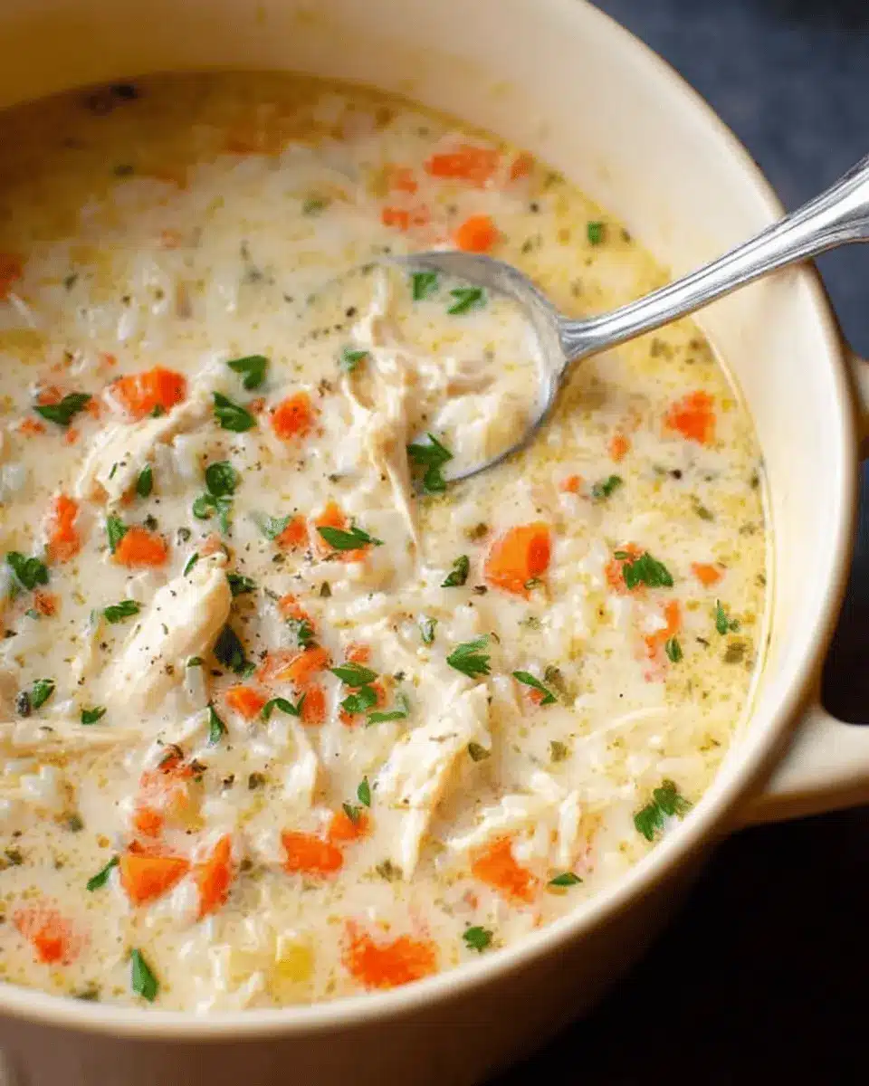In conclusion, this comforting creamy chicken and rice soup is the perfect remedy for chilly days and busy weeknights. With its rich flavors and simple preparation, it quickly becomes a favorite at the dinner table. Serve it with a crusty baguette for that extra warmth! For more soup inspiration, check out this delicious collection.