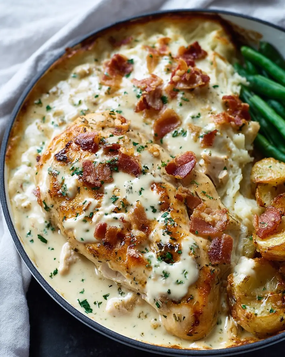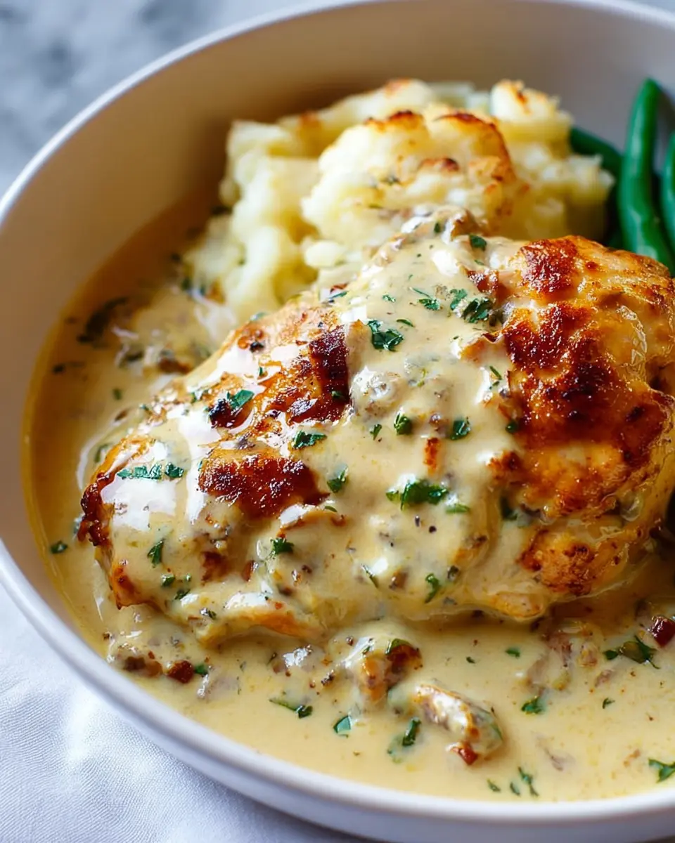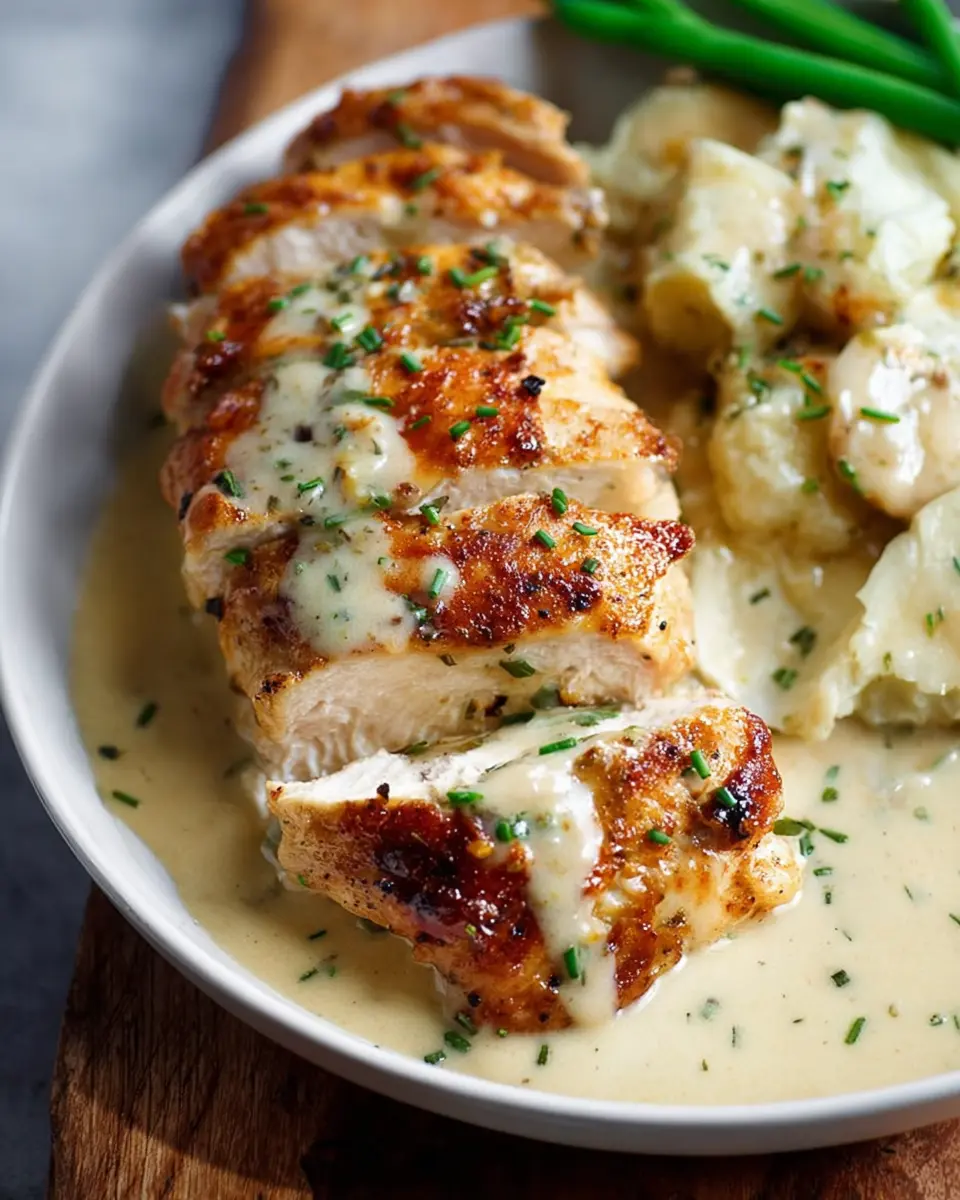 Side Dishes: Pair the chicken with roasted vegetables like broccoli or green beans for a vibrant plate. You can also serve it with fluffy baked potatoes, buttery mashed potatoes, or a fresh green salad for a lighter option.