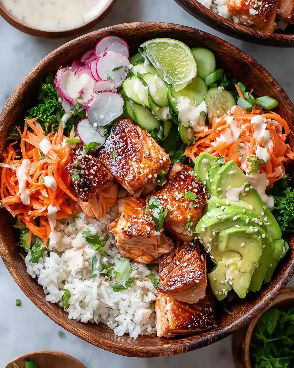 Mixing these ingredients creates a deliciously creamy sauce that takes your salmon bowls to another level. Trust me, once you make it, you’ll want to drizzle it on everything!