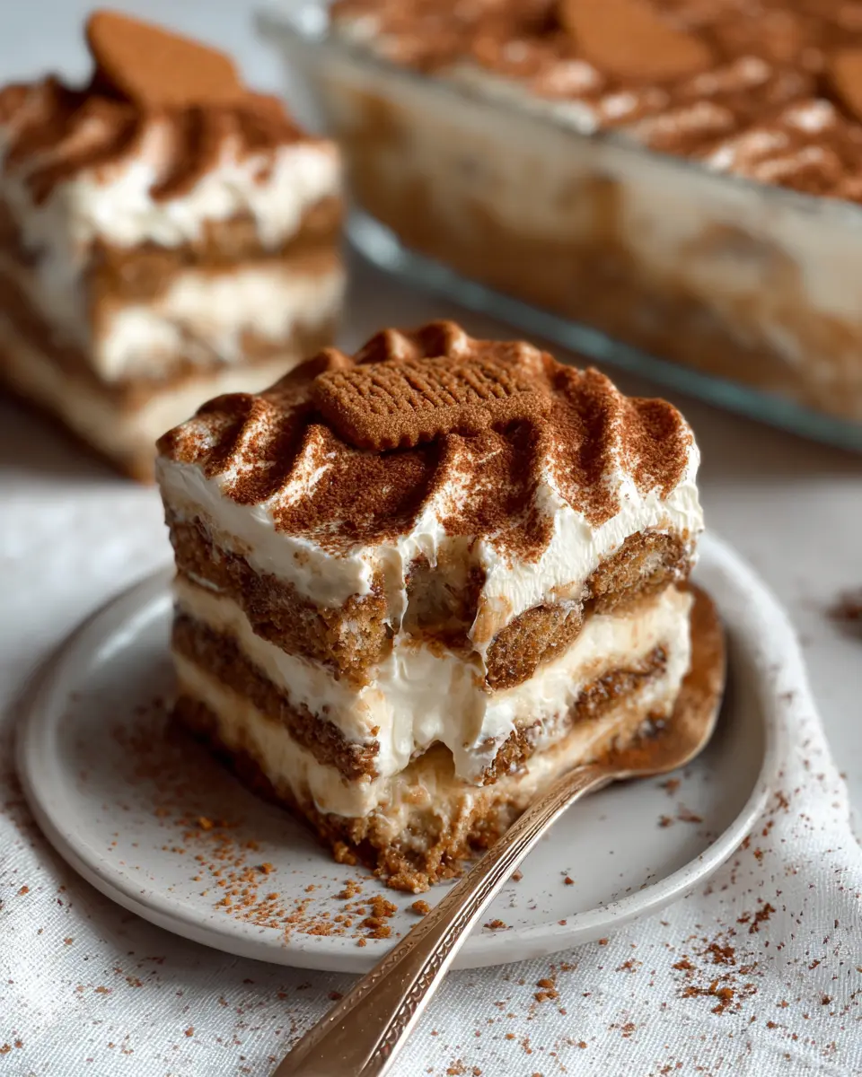 Imagine coming home after a long day, craving something sweet. Picture this: creamy Biscoff mascarpone and layers of coffee-soaked cookies, all coming together in a heavenly, no-bake dessert. You can even prepare it in advance and let it chill overnight, making it an ideal choice for busy weeknights or spontaneous gatherings.