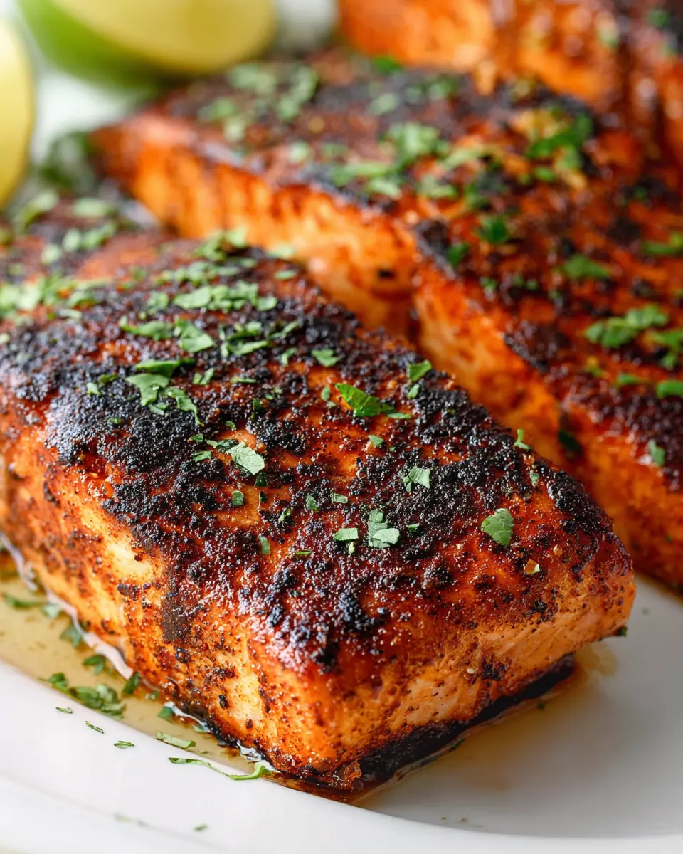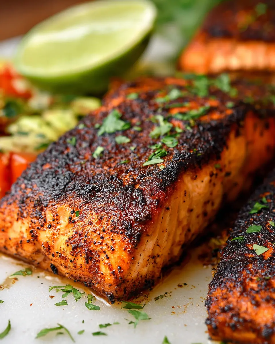 For a refreshing flair, mix lemon zest into your blackening spice. The citrusy aroma perfectly enhances the richness of the salmon. Serve with steamed asparagus or a fresh green salad to complement the zest.