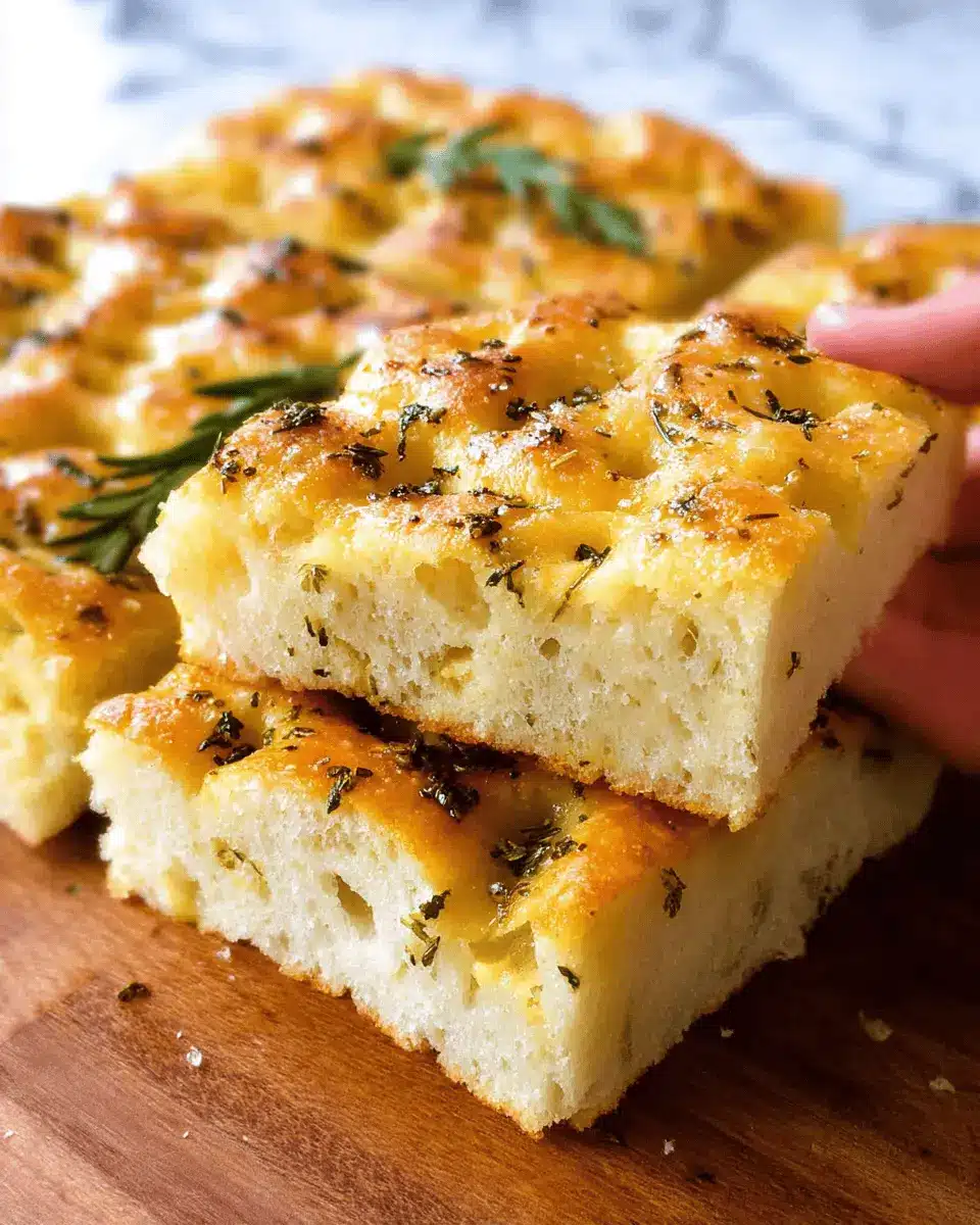 For a fragrant twist, add seasonal herbs to your dough! Try mixing in fresh basil, sage, or dill, depending on what you have on hand. The result is an aromatic focaccia that pairs perfectly with soups and salads.