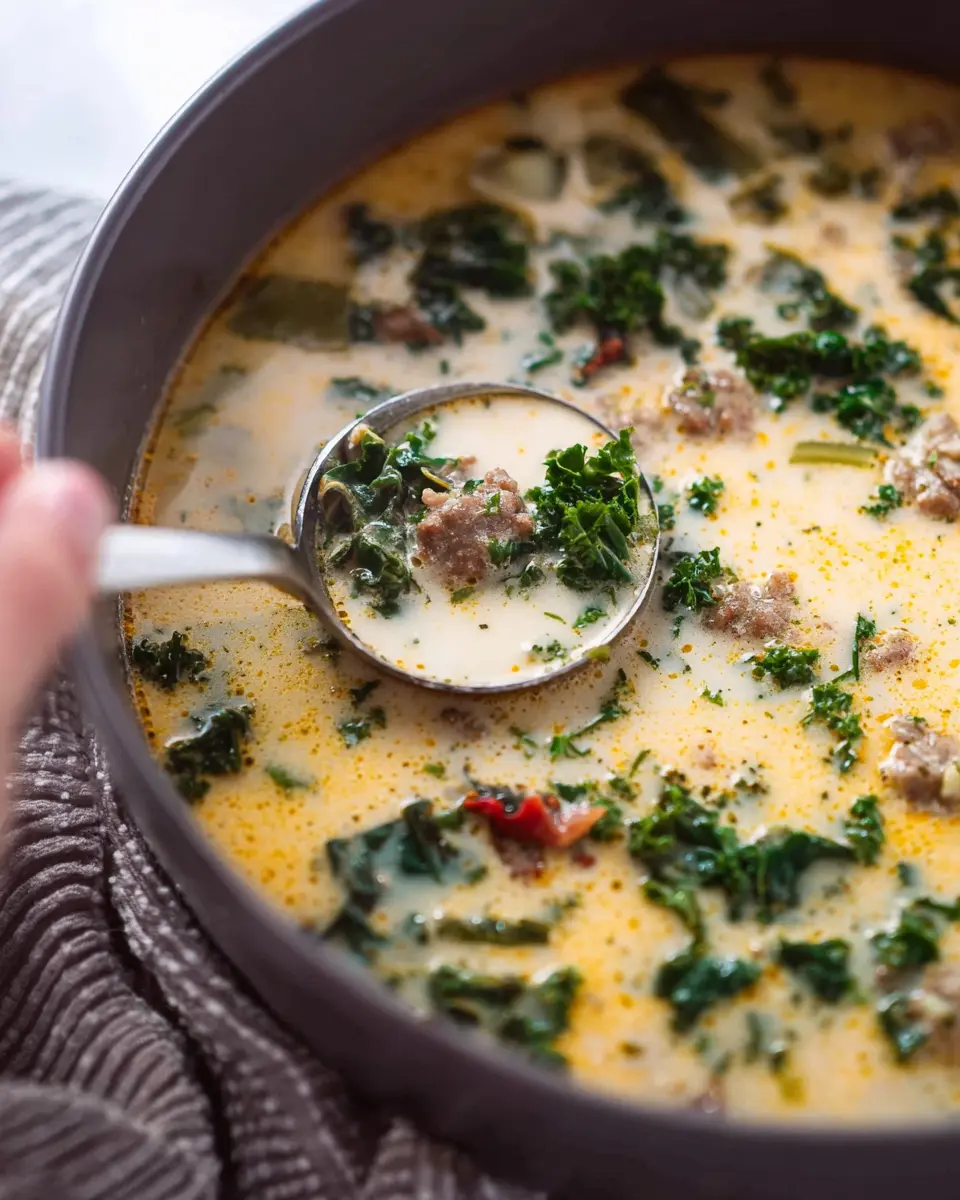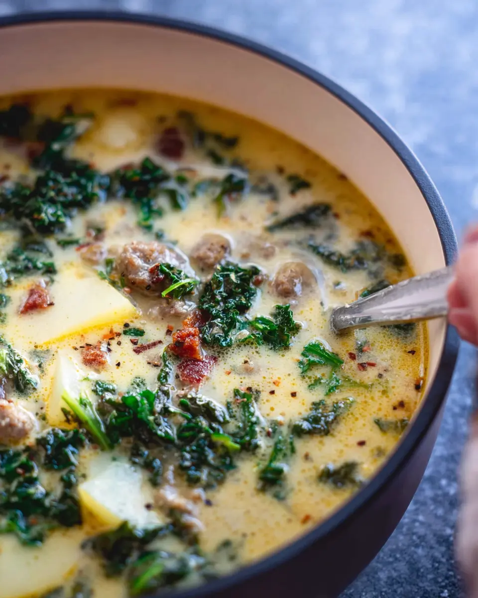 Absolutely! Making this easy Olive Garden Zuppa Toscana soup in a slow cooker is a fantastic idea for busy days. Simply brown the sausage and sauté the onions and garlic first, then add all ingredients to your slow cooker. Let it cook for 4-6 hours on low, and you’ll have a delightful soup ready when you are!