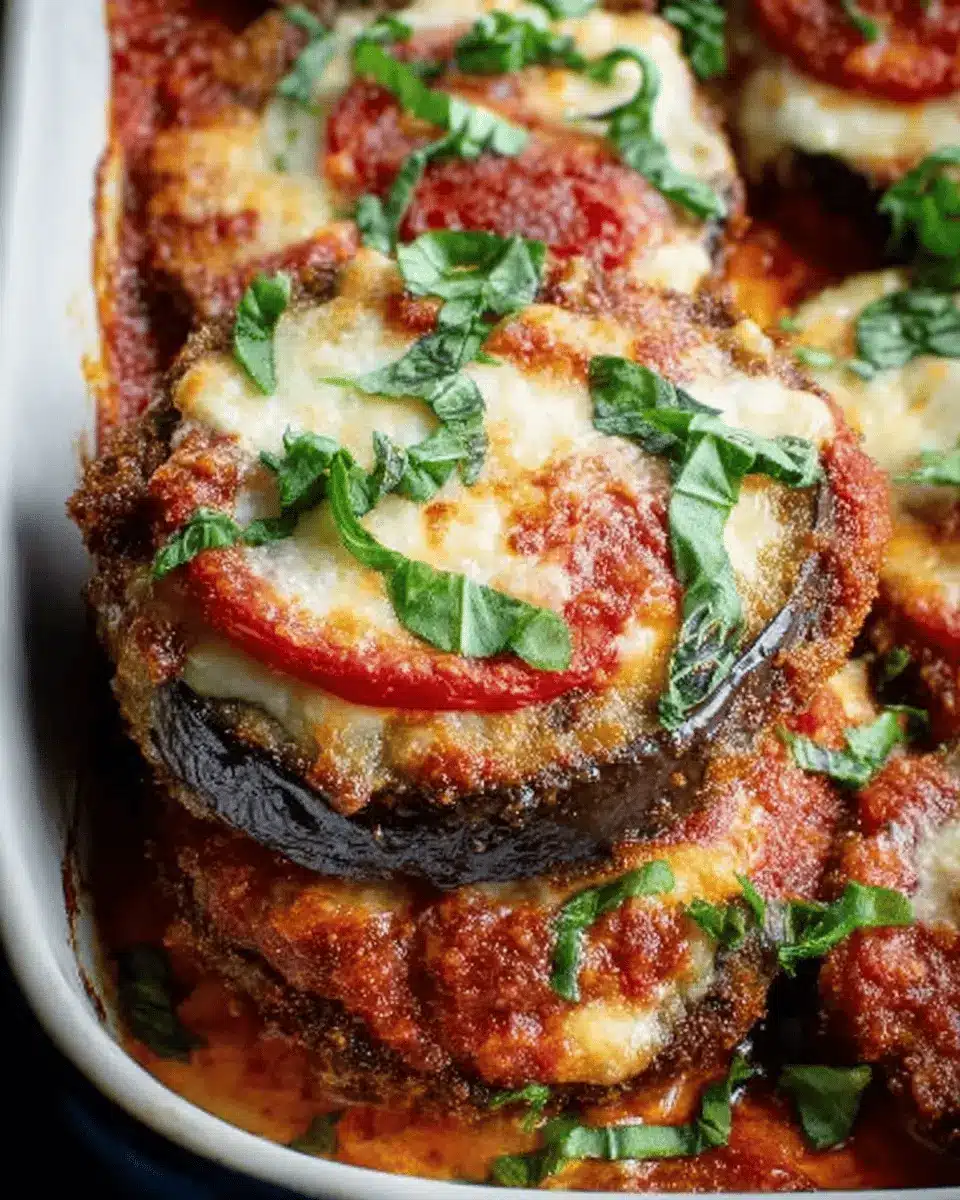 In summary, Eggplant Parmesan is a classic dish that delights with its layers of crispy eggplant, rich marinara, and gooey cheese. Whether for a weeknight dinner or a special gathering, this recipe offers both comfort and flavor. Enjoy making it your own and share this savory masterpiece with loved ones!