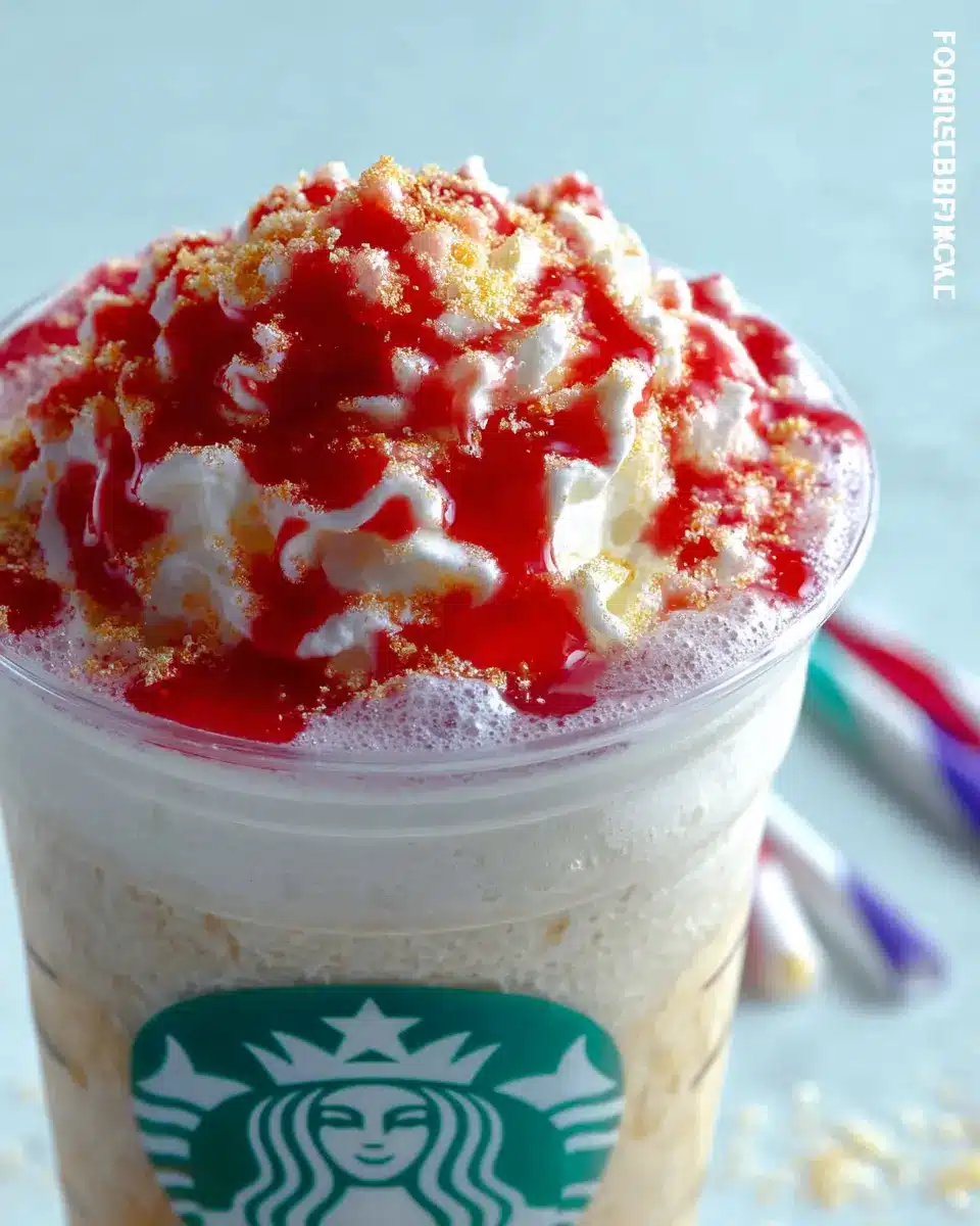 The Firework Frappuccino is a delightful celebration of summer flavors designed to be a feast for the eyes and palate alike. Available only for a limited time at Starbucks, this vibrant drink features a beautiful swirl of colors that evoke the spirit of Independence Day. Imagine layers of refreshing berry flavors, creamy coconut milk, and a burst of strawberries, all topped off with a dreamy vanilla sweet cream cold foam.