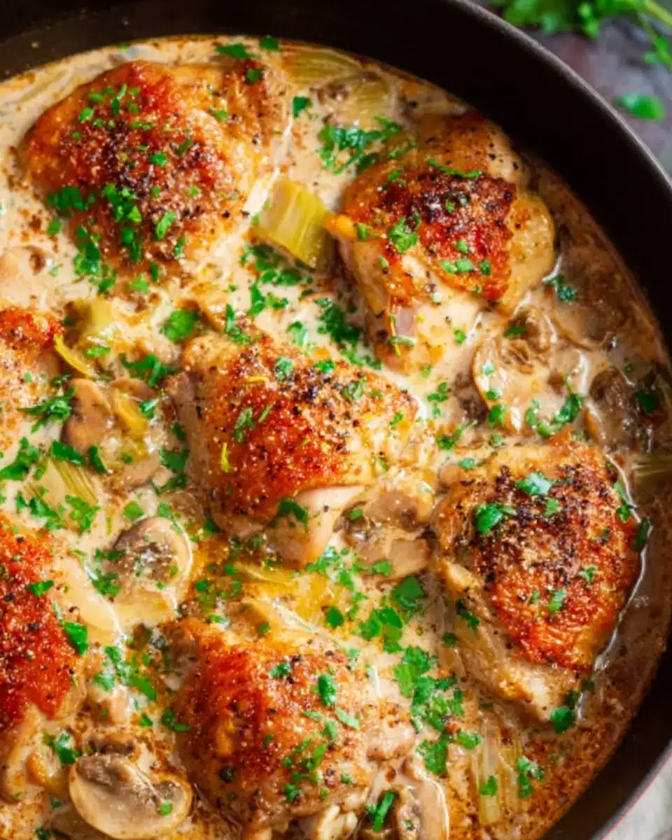 To ensure your French Chicken Casserole is bursting with flavor, don’t be shy when seasoning your chicken thighs with salt and pepper. Season each layer as you cook—this means adding some salt while sautéing the onions and vegetables, too. Fresh herbs like parsley add contrast at the end, but if you want an extra kick, consider using a pinch of smoked paprika for depth.