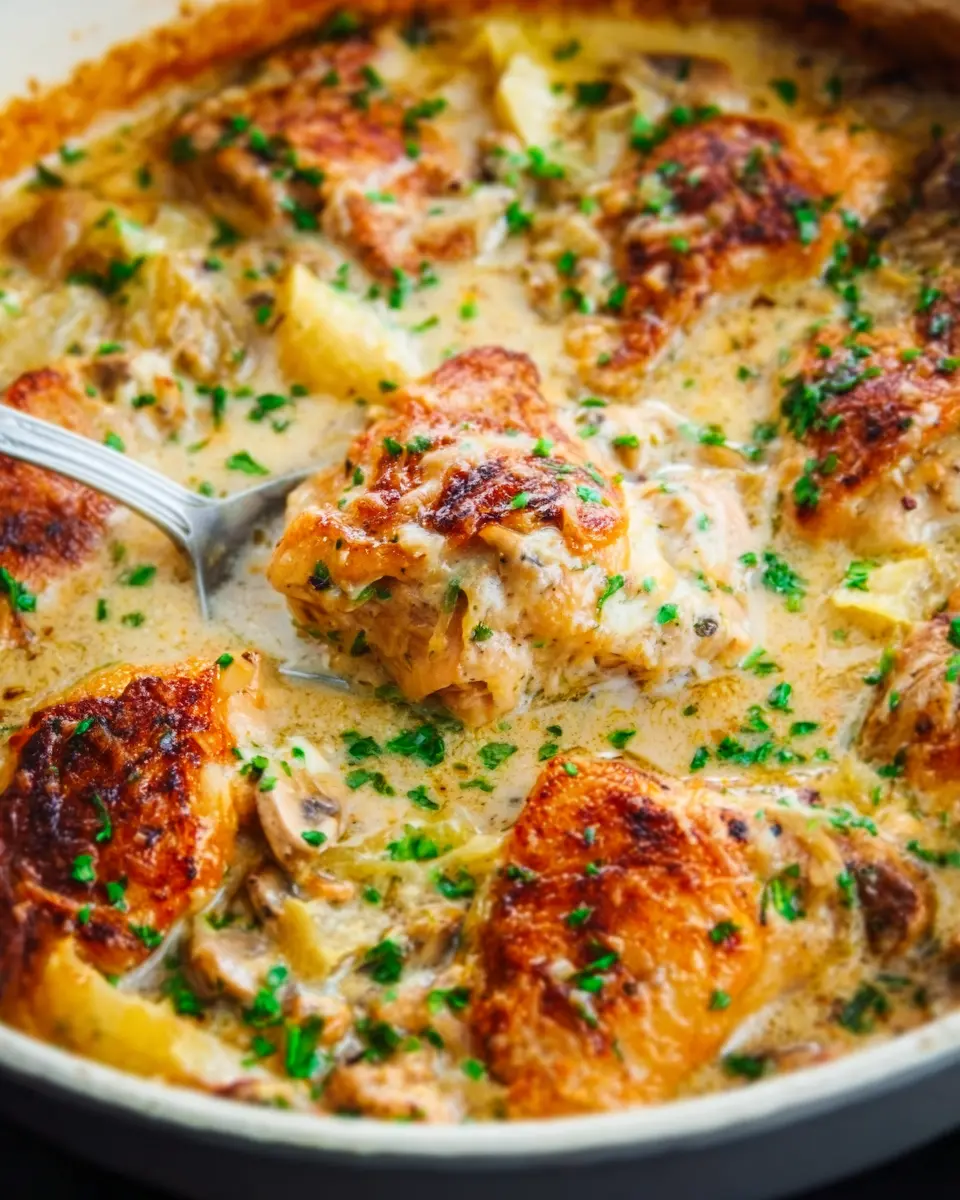 When you think of comfort food, the French Chicken Casserole likely comes to mind. It's a delightful blend of juicy chicken thighs, earthy mushrooms, and tender baby potatoes that come together in a creamy, herb-infused sauce. This hearty dish is not only satisfying for the stomach but also soothing for the soul, making it an ideal choice for family dinners or cozy nights at home.