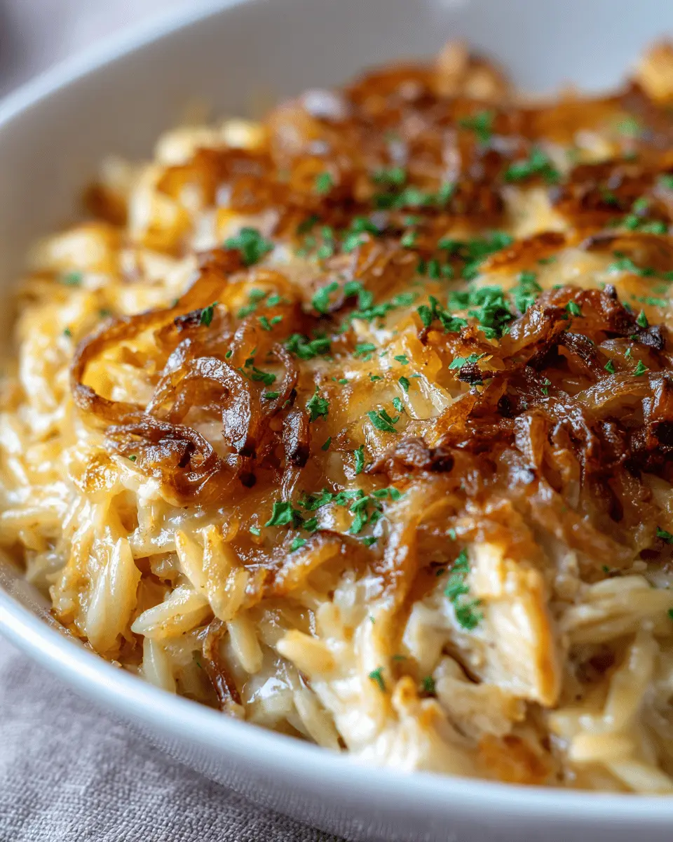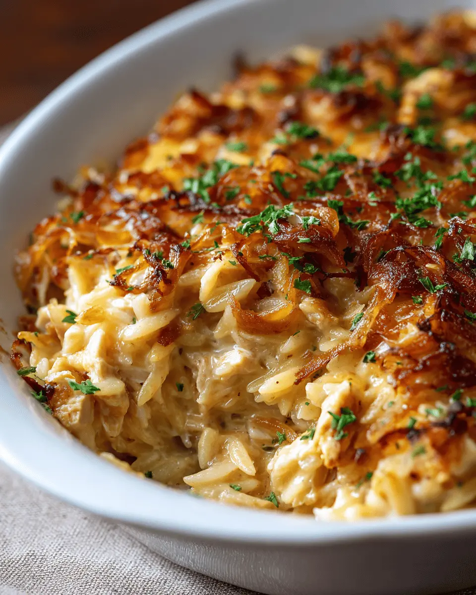Introduction to French Onion Chicken Orzo Casserole