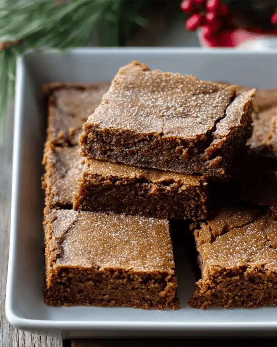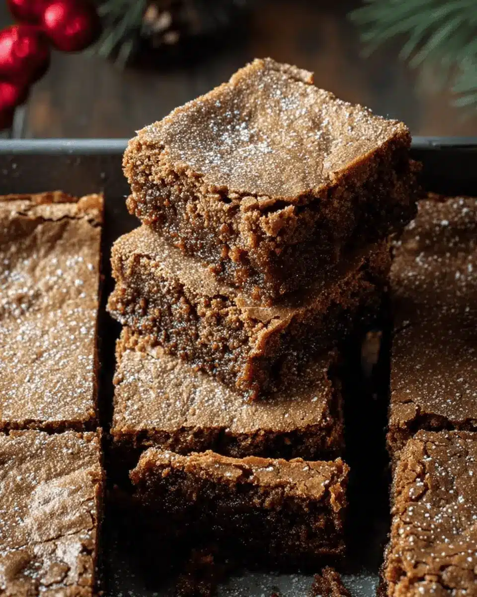 Gingerbread Brownies stand out due to their spicy and warm flavor profile. While traditional brownies rely on chocolate for richness, these treats incorporate warm spices like ginger and cinnamon, providing a unique twist that evokes the coziness of holiday baking. The combination of buttery richness and aromatic spices creates an irresistible, rich dessert that pairs perfectly with a hot cup of coffee or tea.