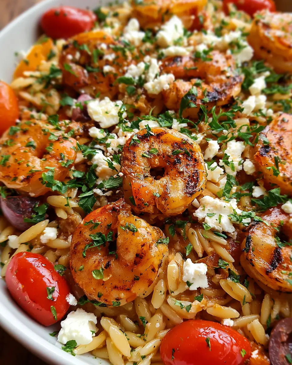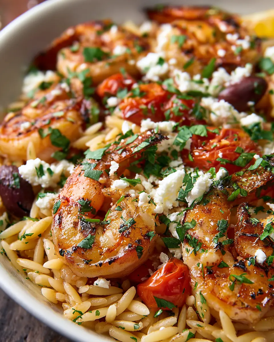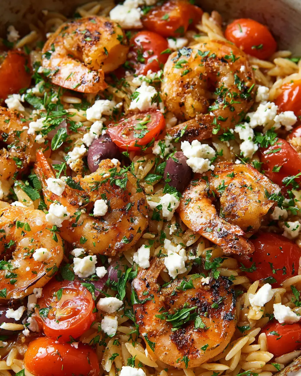 In summary, Greek Shrimp with Orzo and Feta is a delightful meal that combines vibrant Mediterranean flavors with simplicity. Perfect for a weeknight dinner, it’s nutritious, satisfying, and full of fresh ingredients. Don’t hesitate to experiment with variations—your family will love it! Enjoy every bite!