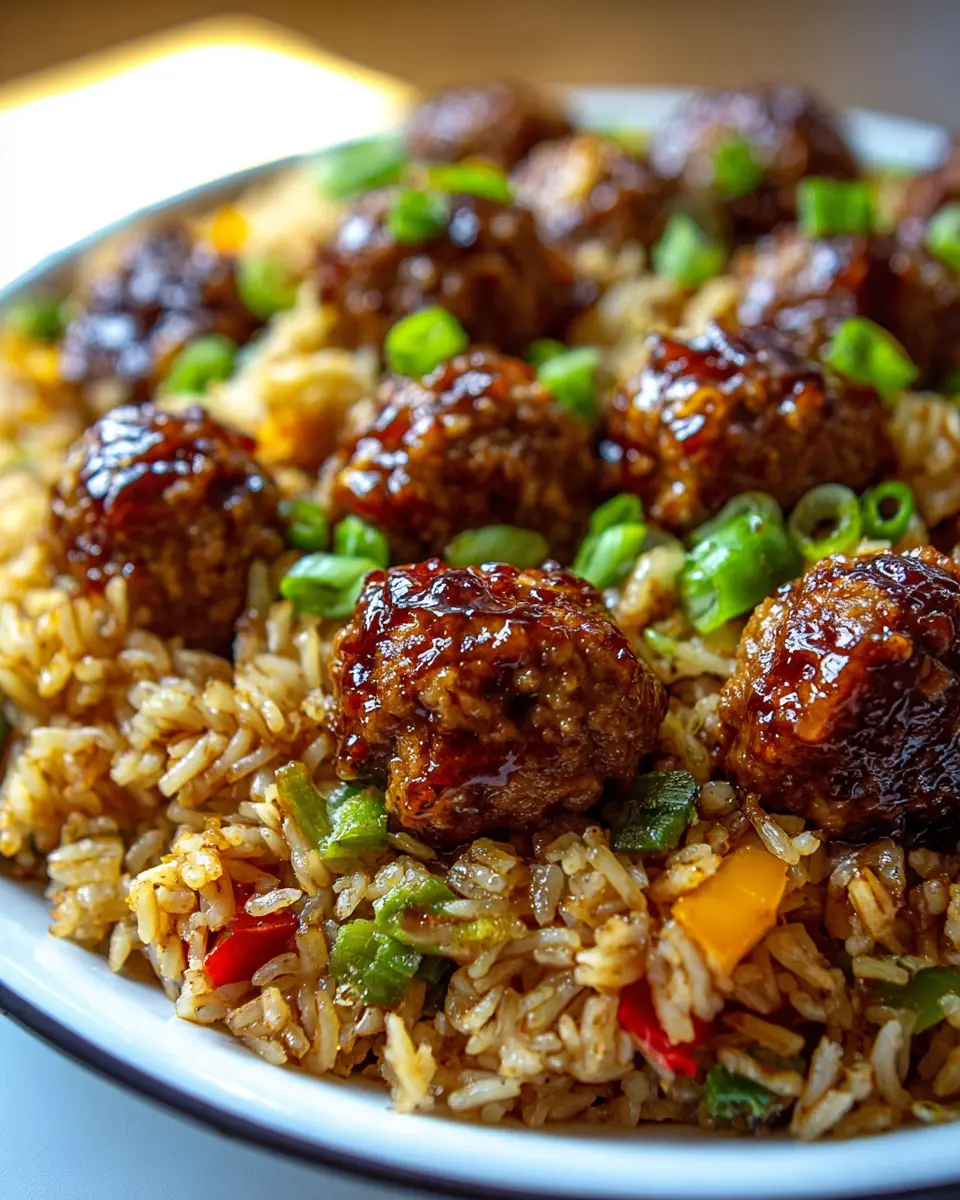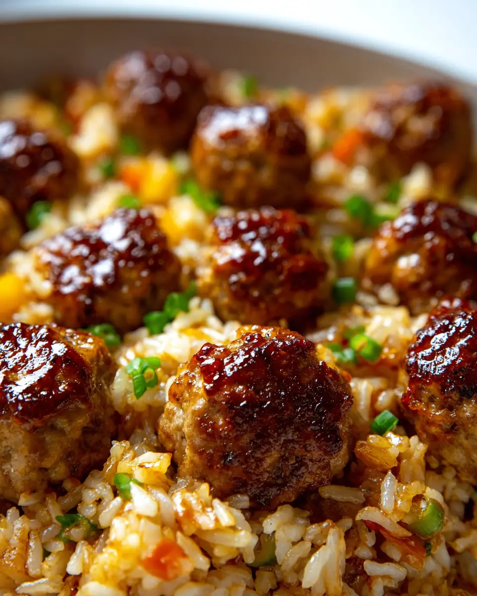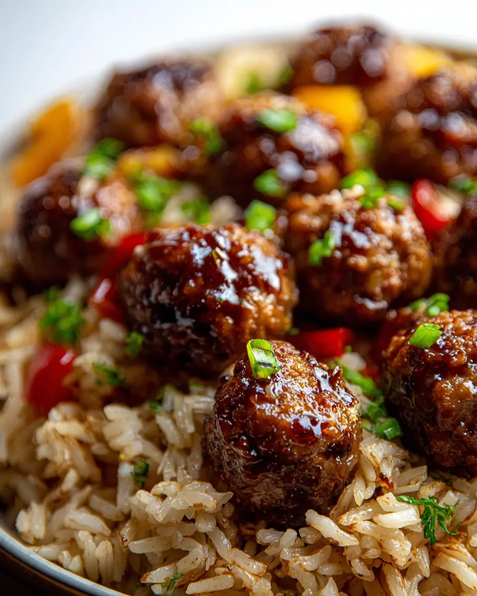 Honey Garlic Meatball Rice Bake