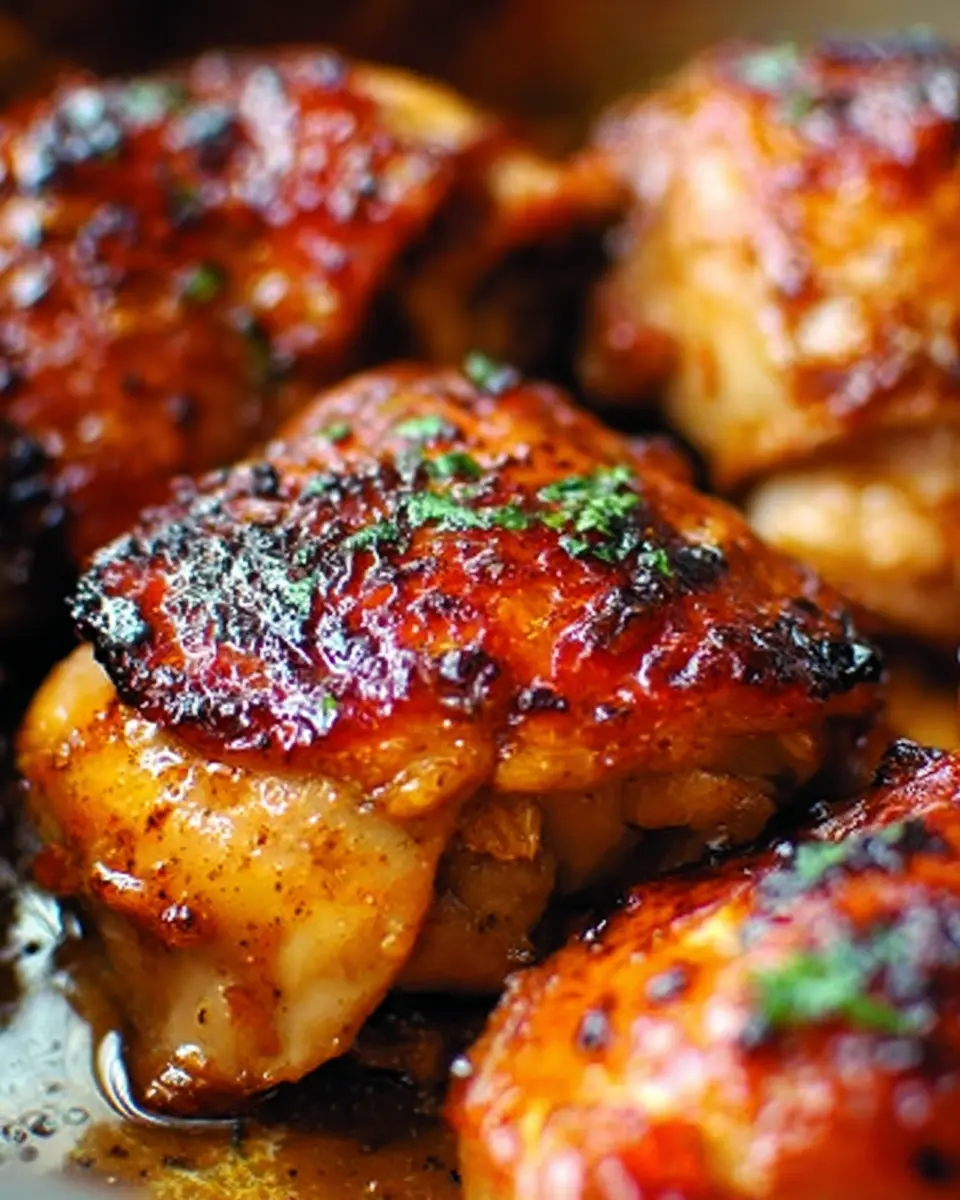 To ensure your chicken thighs have that beautiful golden crunch, you can use the broiler for a couple of minutes at the end of cooking. Just keep a watchful eye—chicken can go from golden to burnt in the blink of an eye!