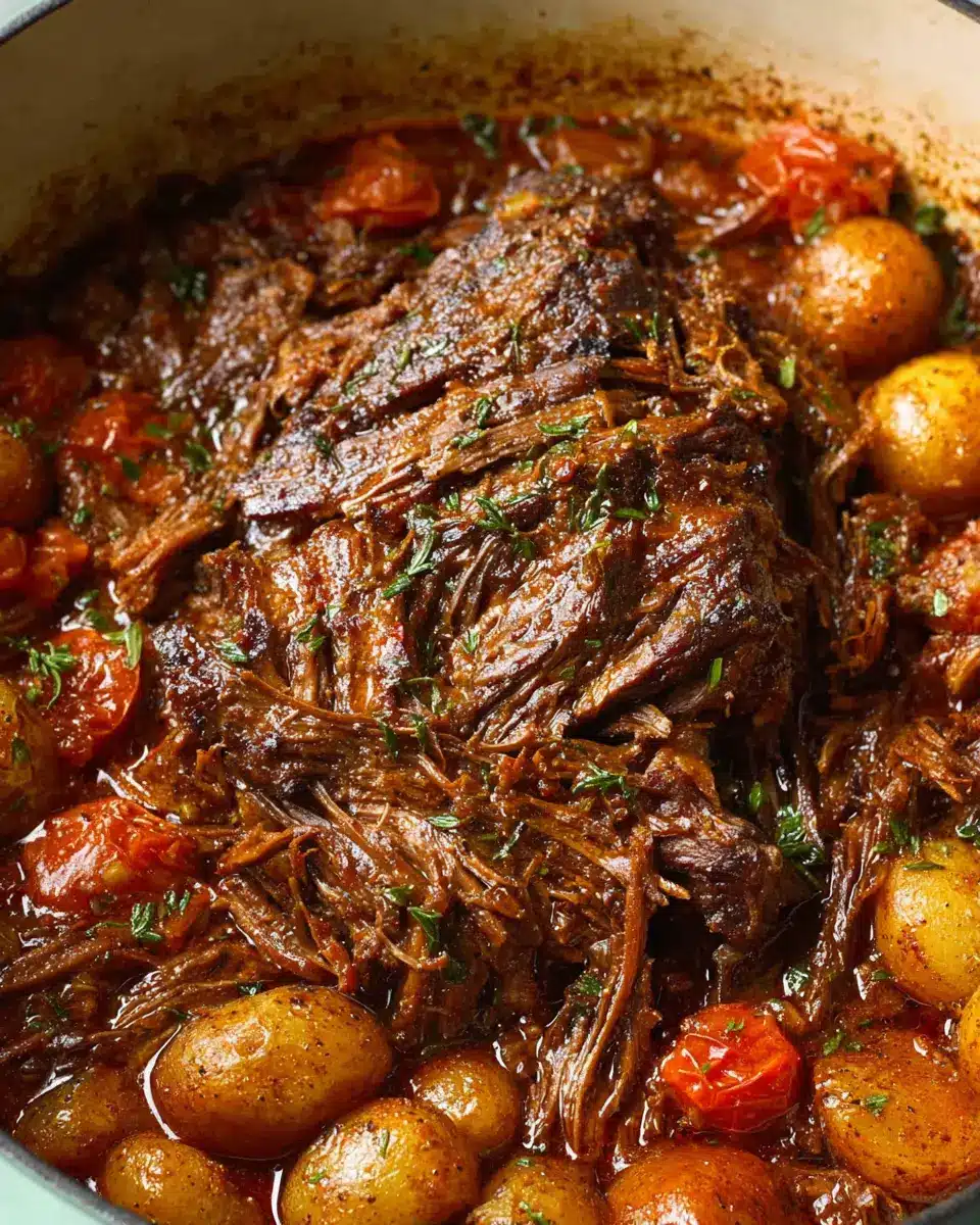 You've made it to the end of our Italian Pot Roast Recipe! This dish is the perfect blend of savory flavors and tender textures, making it ideal for cozy weeknight dinners or special gatherings. With simple steps and ingredients, it promises satisfaction with every bite. Enjoy!