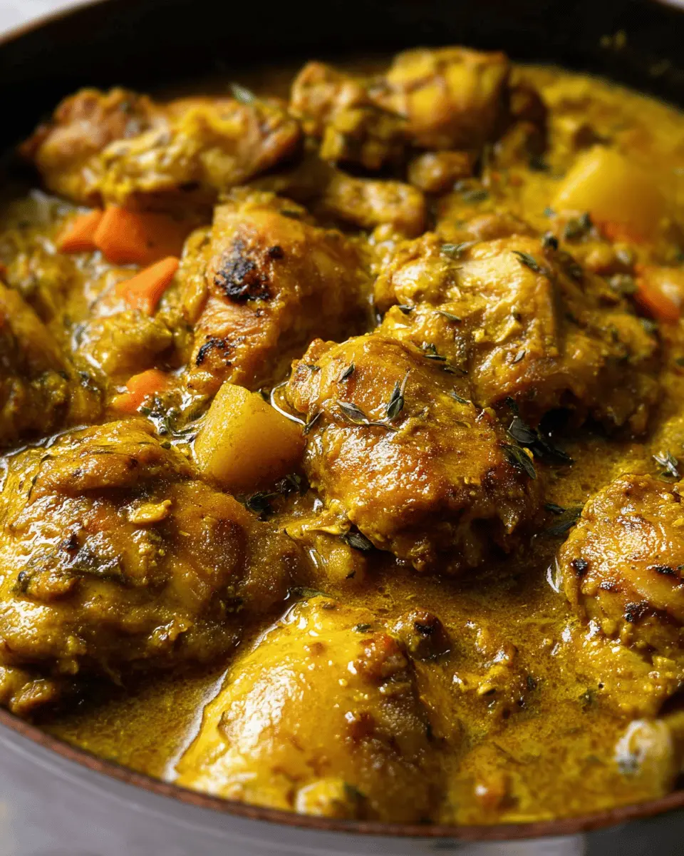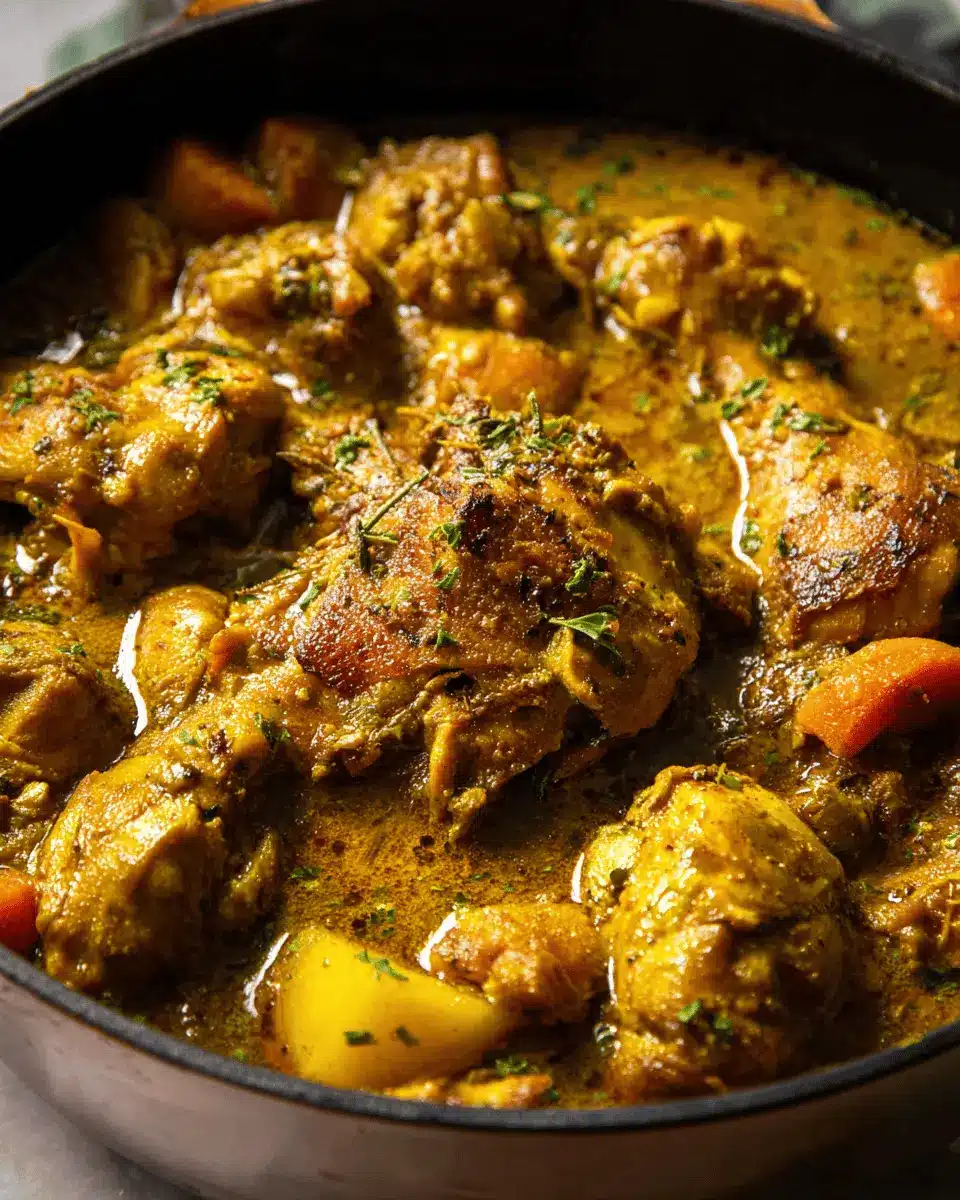 Selecting the right pot is key for achieving an authentic curry. A heavy-bottomed Dutch oven is ideal, as it distributes heat evenly. If you don’t have one, a deep skillet can work. This prevents the chicken from burning while cooking, allowing it to simmer perfectly in the flavorful sauce. Make sure your pot is large enough to hold all the chicken and vegetables without crowding—this ensures even cooking and that those rich flavors develop nicely.