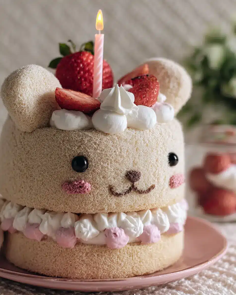 Now for the fun part—decoration! Use the chocolate whipped cream to pipe little legs on the bottom cake layer and create a cute face using melted dark chocolate. Don’t forget to top it with halved strawberries and a birthday candle. Each step in this process showcases your creativity and love, making the Jellycat Birthday Cake not just a dessert but a heartfelt gift for your loved ones.
