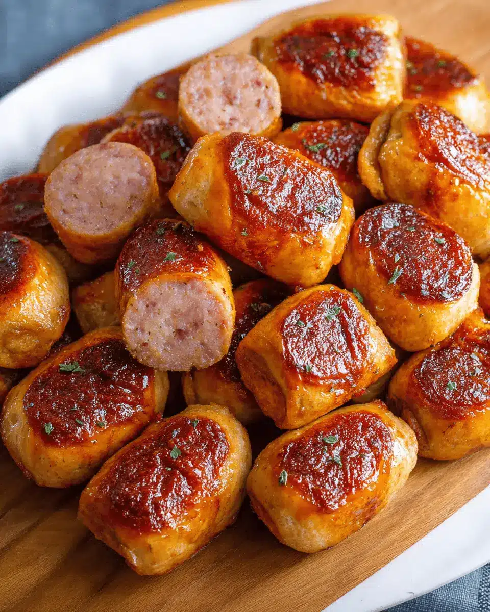 These delectable bites are the ultimate crowd-pleaser, combining comforting crescent dough with savory beef sausages and creamy cheese. Whether served at a gathering or as a cozy snack for movie night, they deliver on fun and flavor. The glaze elevates them further, making each piece irresistible. You can even switch things up by pairing them with different dipping sauces, like spicy mustard or tangy ketchup.