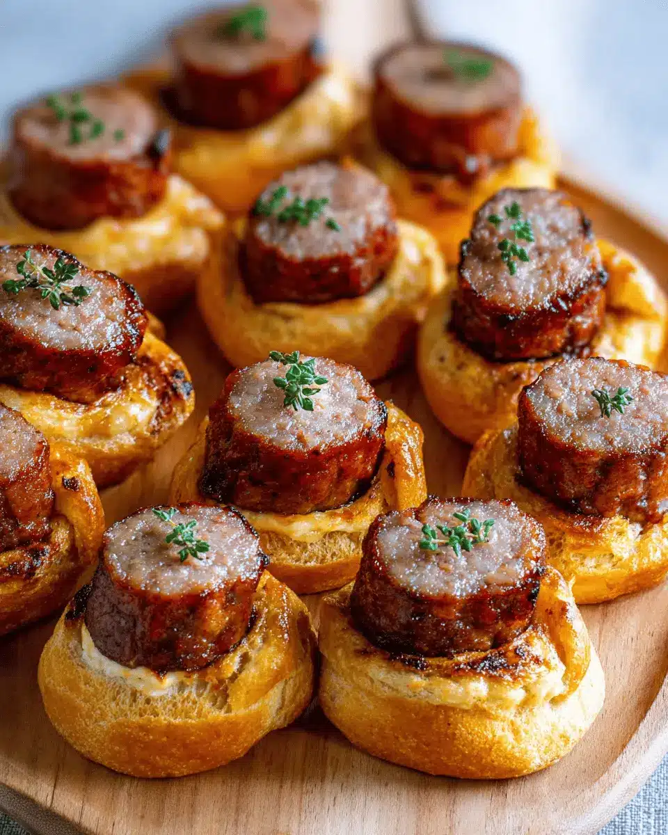 Pair your Kilted Sausage Bites with some refreshing sides like a simple cucumber salad or crispy sweet potato fries. A platter of fresh veggies with hummus would also complement the savory bites beautifully. For a touch of elegance, consider serving them with a spicy aioli or a tangy mustard dip to elevate your snack spread.