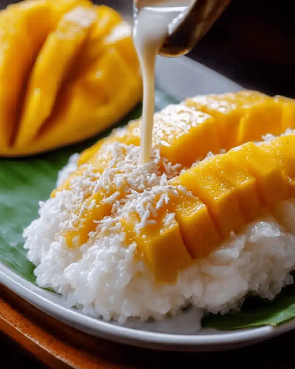 Absolutely! While mangoes are the classic choice for this delightful dessert, you can experiment with other fruits like pineapple, banana, or even jackfruit. Just make sure the fruit you choose is ripe and sweet to complement the rich coconut flavor.