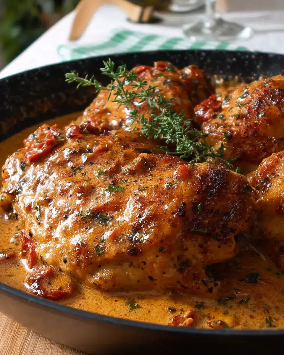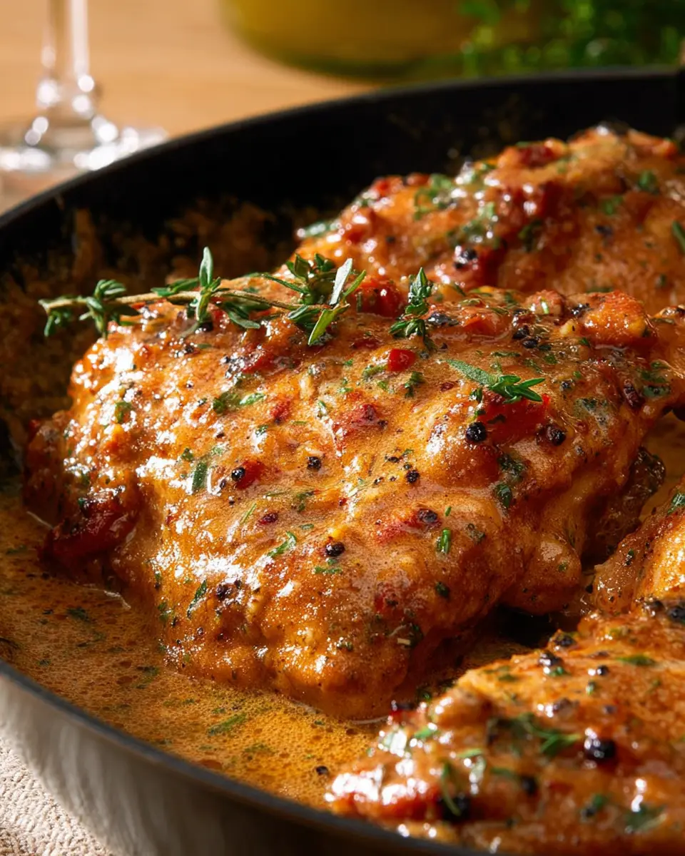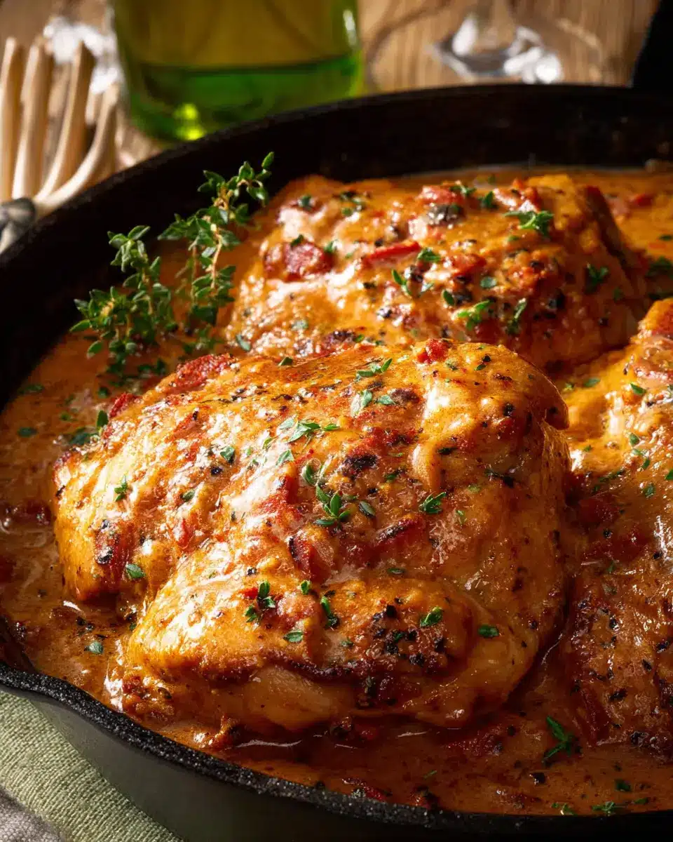 Once you’re prepped, the cooking will take about 15 minutes. This includes browning the chicken and letting the flavors meld in the creamy sauce.