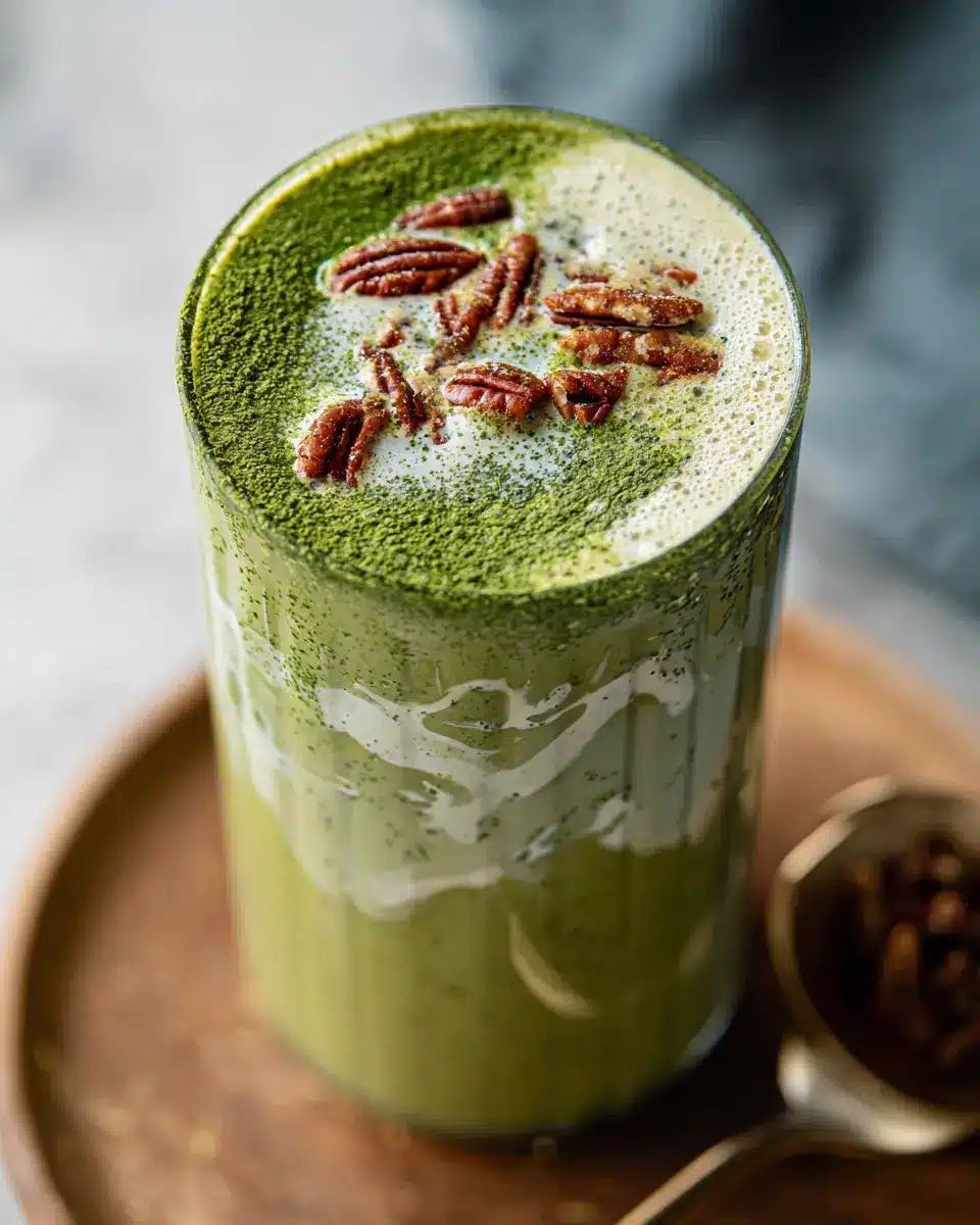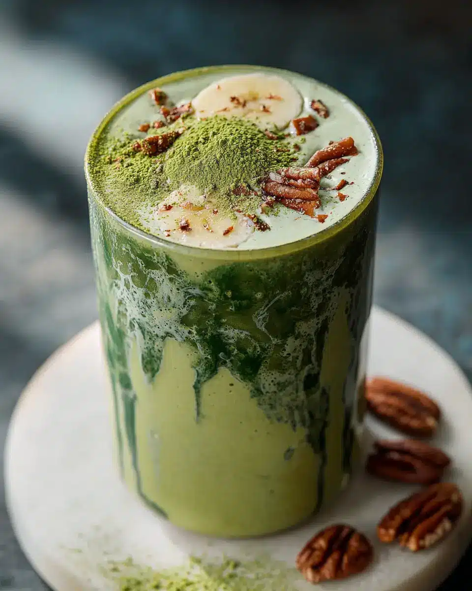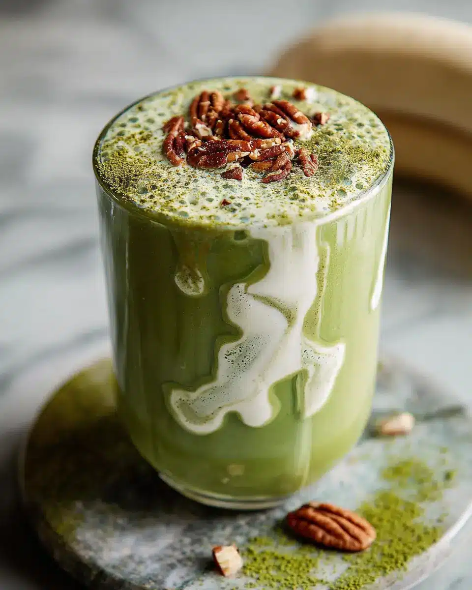 Matcha Banana Breakfast Smoothie with Toasted Pecans