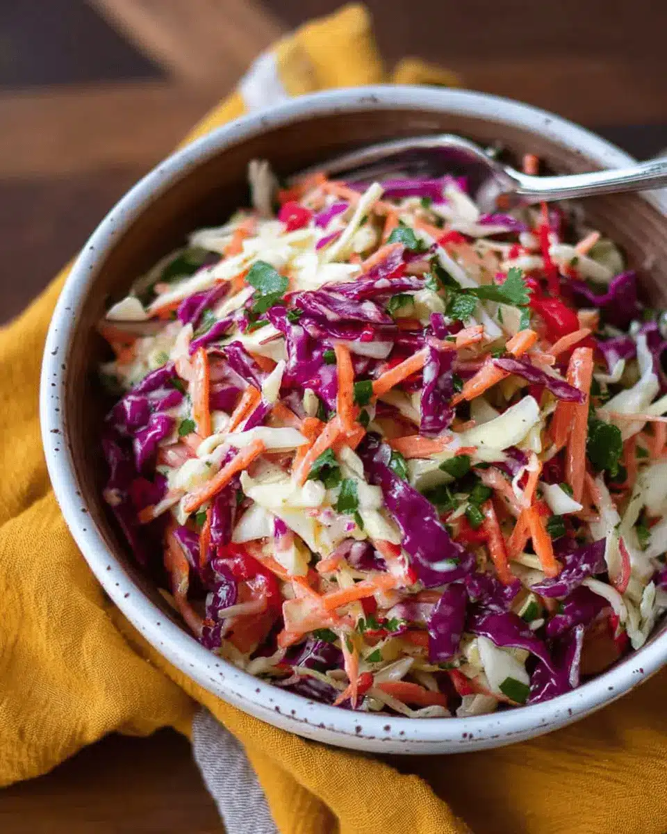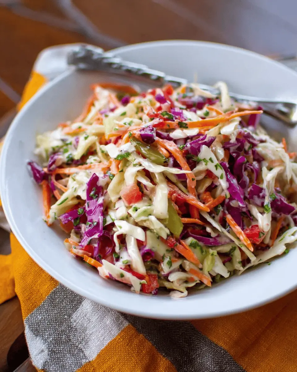 Combining these fresh ingredients gives your coleslaw a colorful flair and a satisfying crunch.