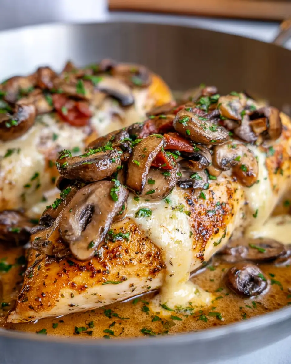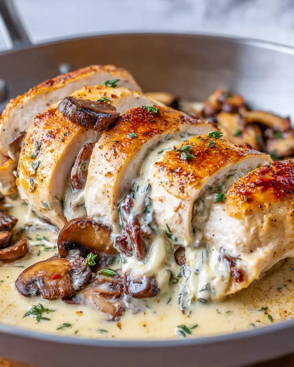 Return the chicken to the skillet, nestled into the creamy sauce. Spoon some sauce over each breast, cover the pan, and let it simmer on low heat for 12-15 minutes, or until the chicken is cooked through (aim for an internal temperature of 165°F). This last step ensures that every bite of your mushroom stuffed chicken is juicy, flavorful, and oh-so-satisfying. Garnish with fresh chopped parsley for that finishing touch, and voila!