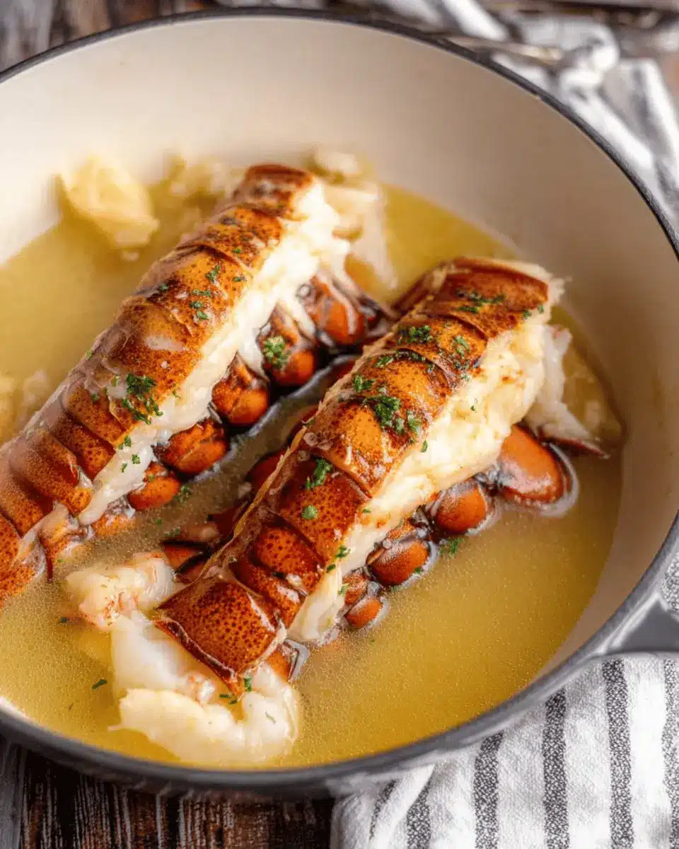 So, let’s dive into the detailed recipe for your no fail perfect butter poached lobster tail!