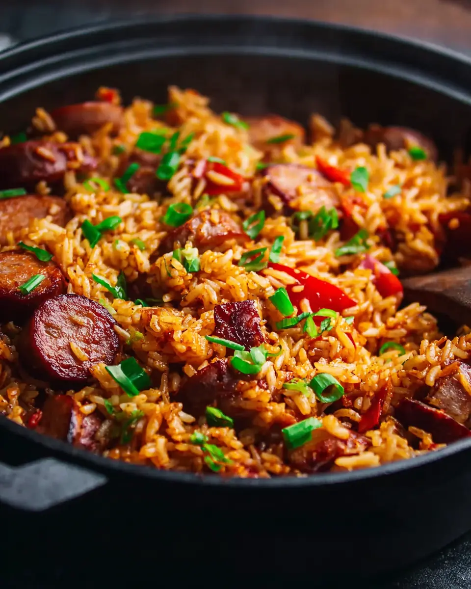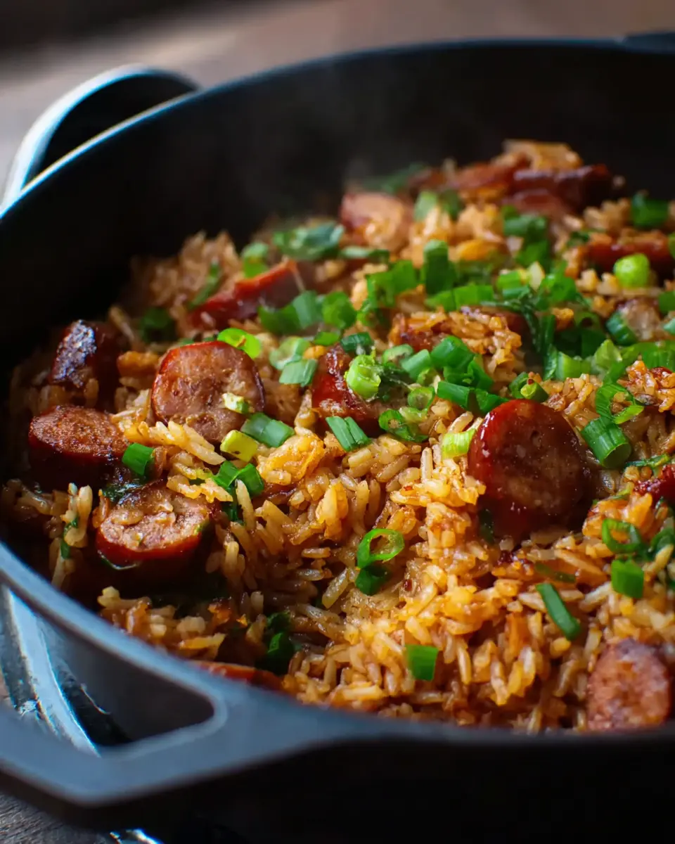 One Pan Sweet and Tangy Barbecue Sausage Rice Recipe
