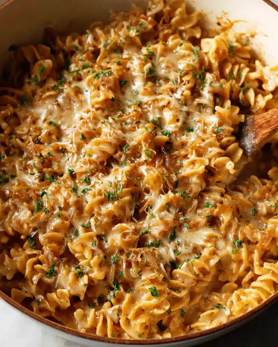Embrace the ease, comfort, and delightful taste of one-pot French onion pasta in your culinary repertoire!