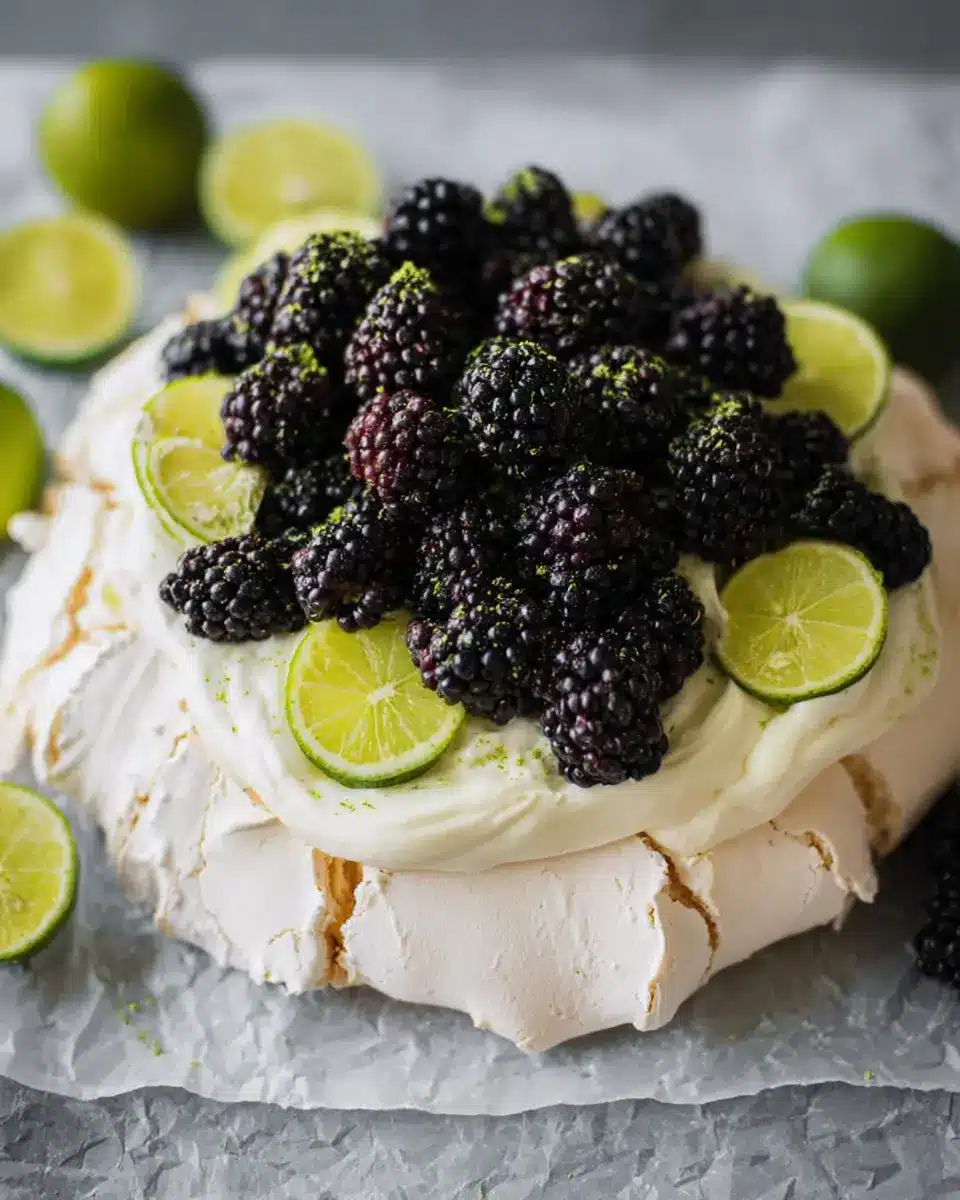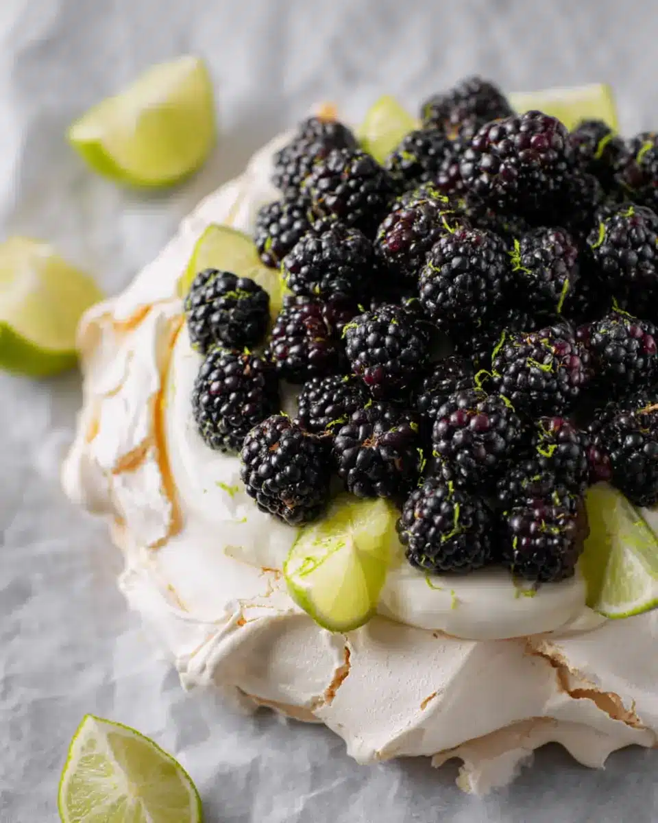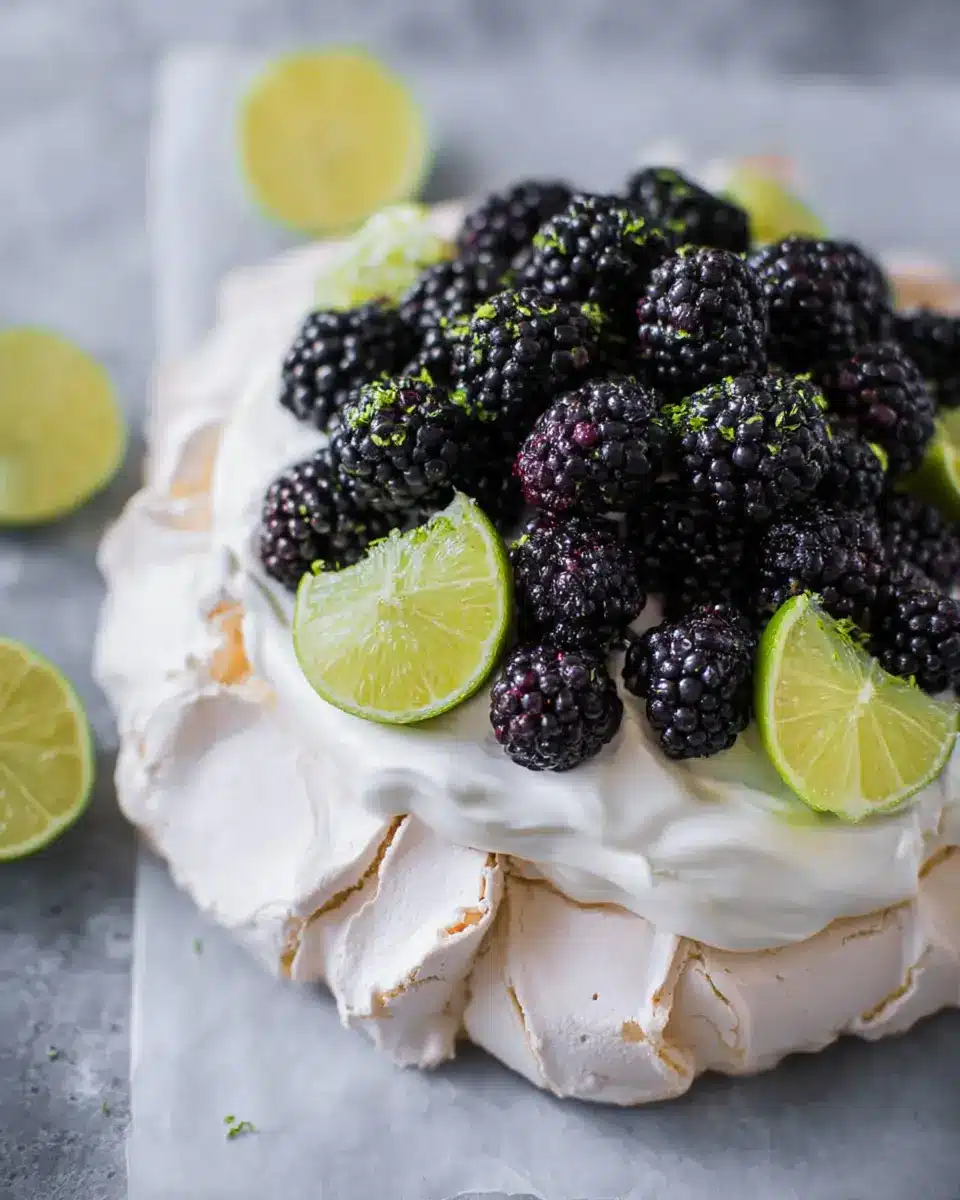 Pavlova with Blackberry, Lime, and Cardamom