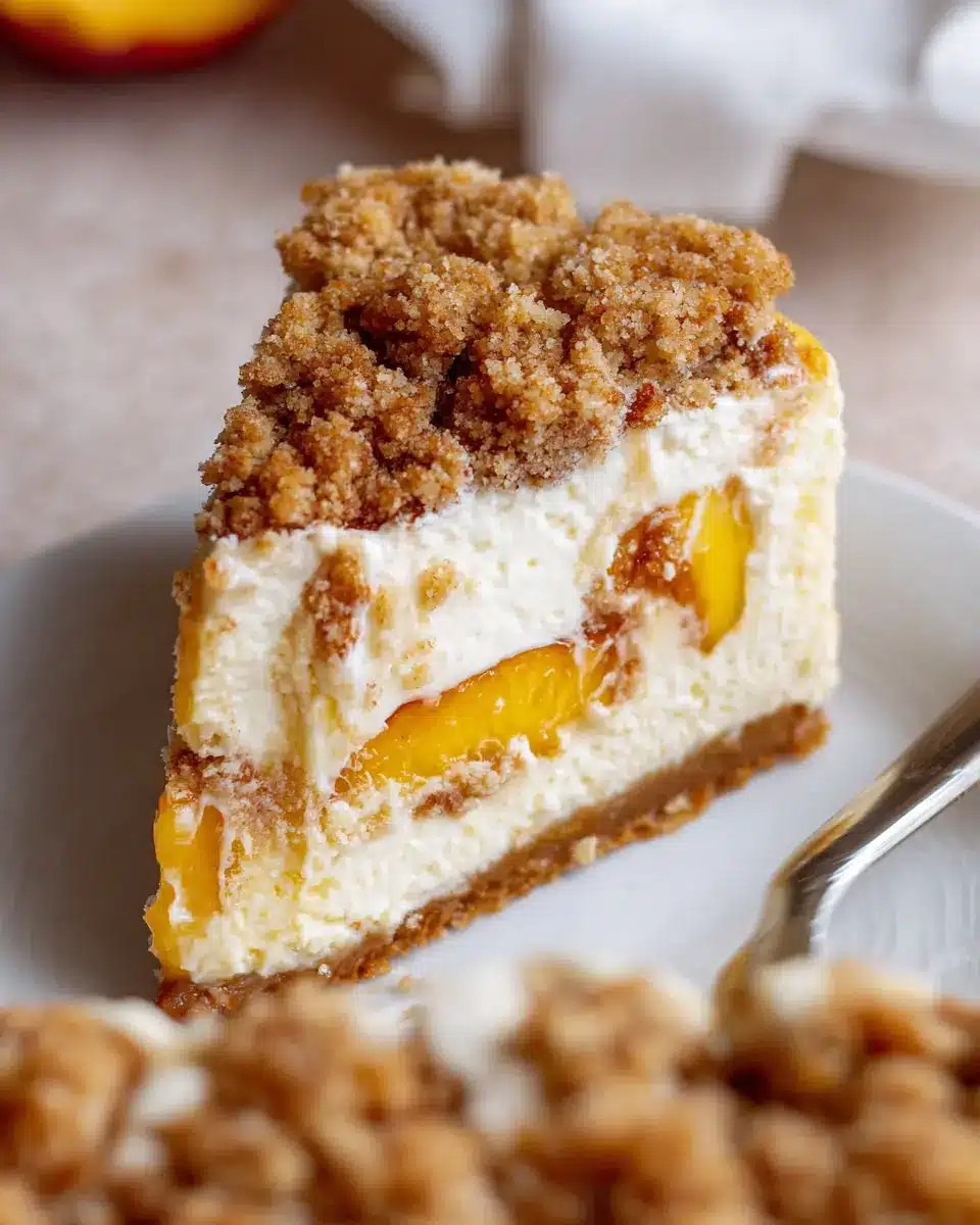 Switching up the crust can provide a whole new dimension to your Peach Crumble Cheesecake. Almond flour makes a fantastic gluten-free alternative, lending a slightly nutty flavor that pairs beautifully with the peaches. Other options like crushed gingersnaps or even a pretzel crust for a salty-sweet combo can also add an exciting twist. Feel free to get creative and make this cheesecake uniquely yours!