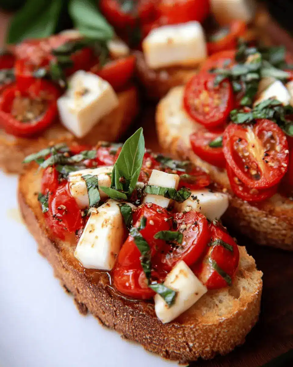 At this point, your perfect bruschetta with mozzarella is ready to be served! Arrange them beautifully on a platter and watch as your guests flock to this enchanting appetizer. The combination of the fresh ingredients and the crunch of the bread will definitely make for a memorable culinary experience. Enjoy every delicious bite, and don’t forget to take a moment to relish the smiles of your friends and family!