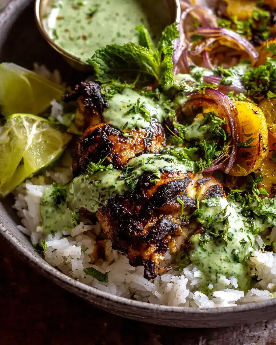 For a delightful vegetarian twist, substitute the chicken with an array of grilled vegetables. Zucchini, bell peppers, and asparagus work wonderfully. Just season them similarly as you would the chicken and grill until tender. Serve with the same luscious creamy green sauce for a refreshing and filling meal. Don't forget to pair the dish with fluffy rice or a fresh salad for a balanced plate!