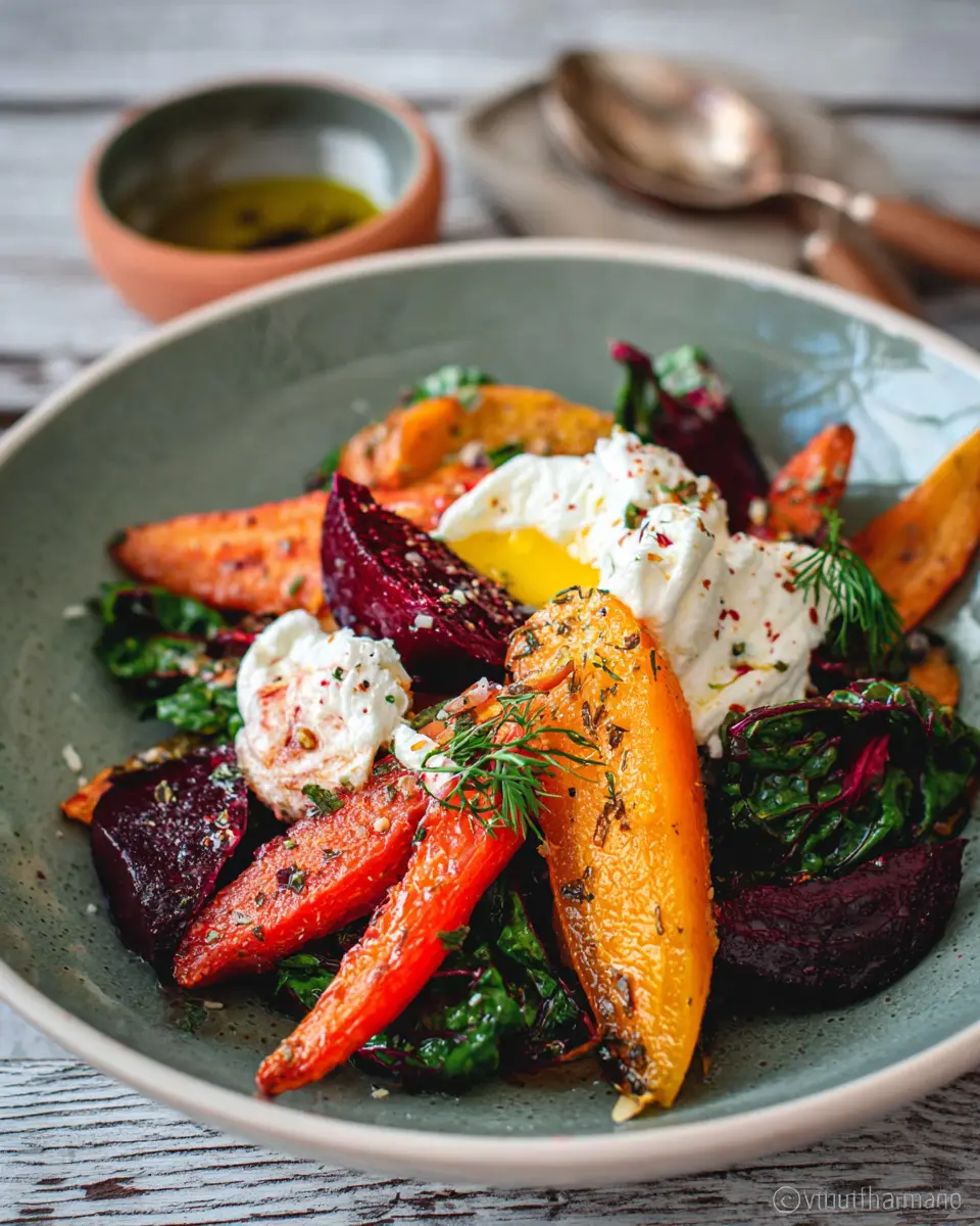 Roasted Beets and Carrots Salad with Burrata