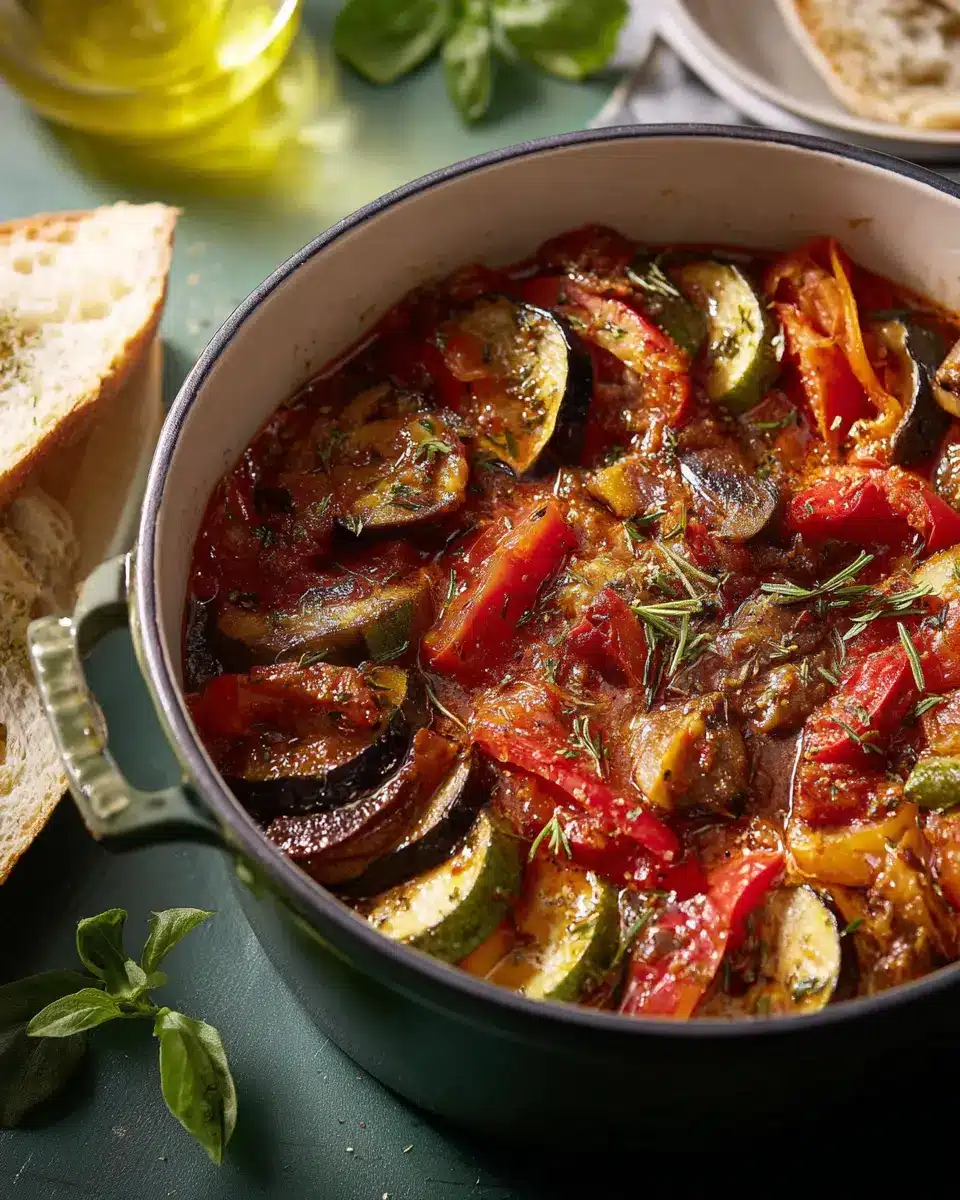 Looking for a bit of heat? Sprinkle in some red pepper flakes as you prepare your slow cooker ratatouille. This variation gives the dish a new kick that spice lovers will adore. A little goes a long way, so start with a pinch and adjust to your taste. Serve it with crusty bread or alongside a refreshing yogurt sauce for an added contrast that brings out the delicious vegetables even more.