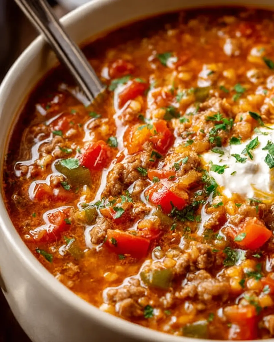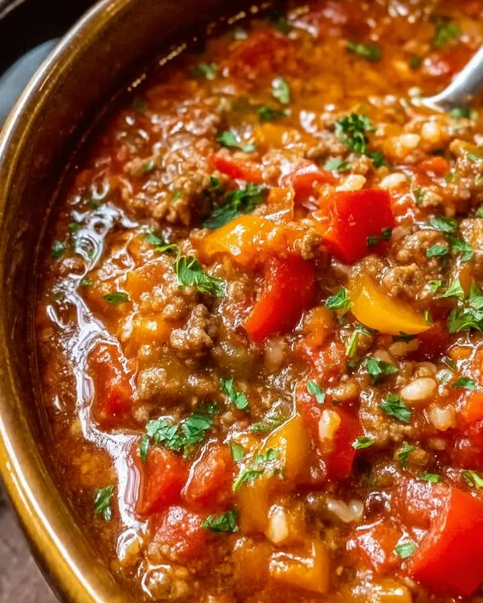 In summary, this stuffed pepper soup recipe combines comfort and convenience, making it a perfect meal for busy weeknights. Full of flavor and hearty ingredients, it’s not only satisfying but also a great way to enjoy the classic stuffed peppers you love. Serve it warm, and enjoy every spoonful!
