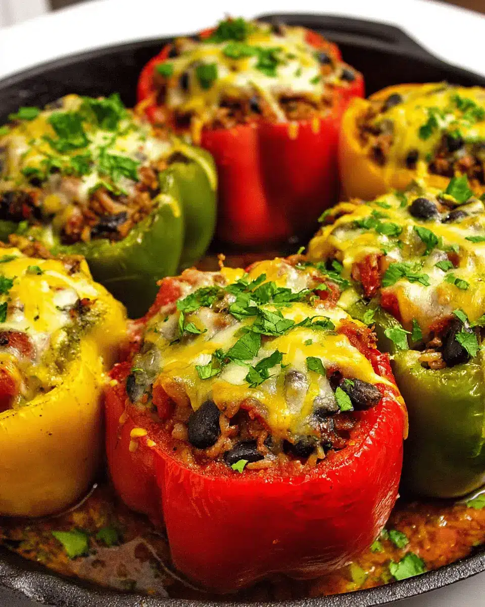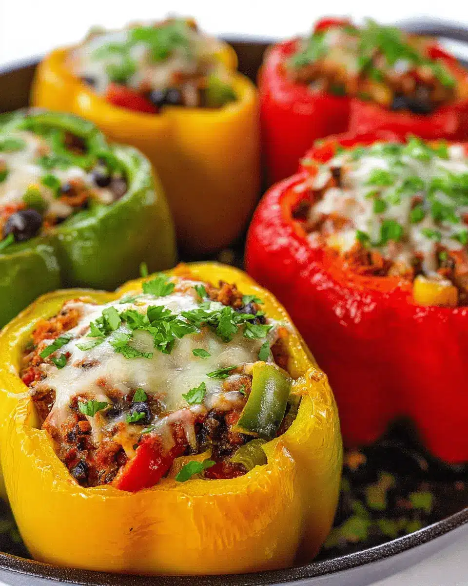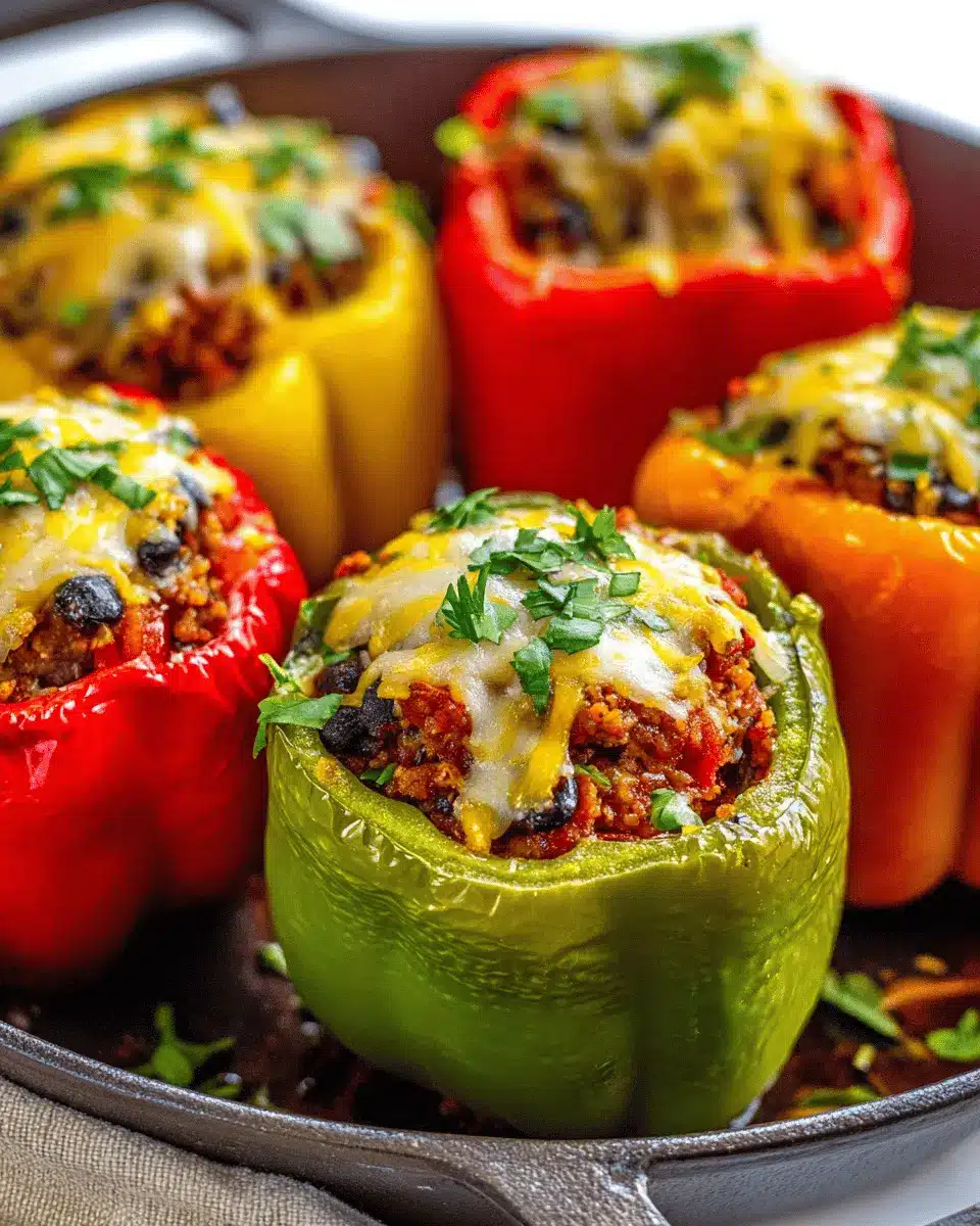 With just a few steps, you’ve prepared a delightful entrée that’s not only colorful but also packed with flavor. Whether you’re hosting friends or enjoying a cozy night in, these stuffed peppers are bound to impress. Don’t forget to sprinkle them with fresh green onions or sliced peppers for that extra pop of flavor when serving. Enjoy your creation!