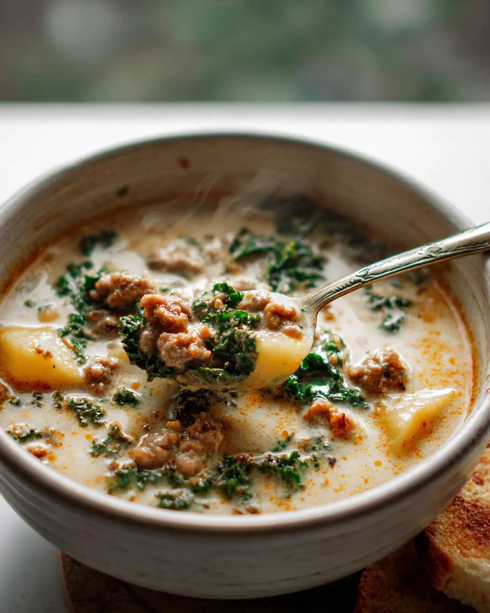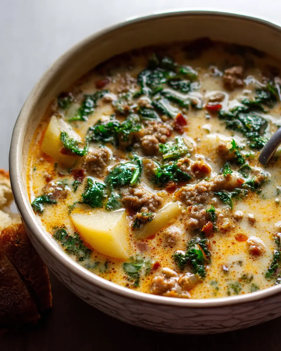 Curious about its health benefits? Greens like kale are loaded with vitamins, while the wholesome broth keeps it light yet filling—perfect for those mindful of their diet. Furthermore, it pairs beautifully with crusty bread slathered in butter, creating a comforting experience that invites seconds. So, grab your ingredients and let’s dive into making this mouthwatering Zuppa Toscana!